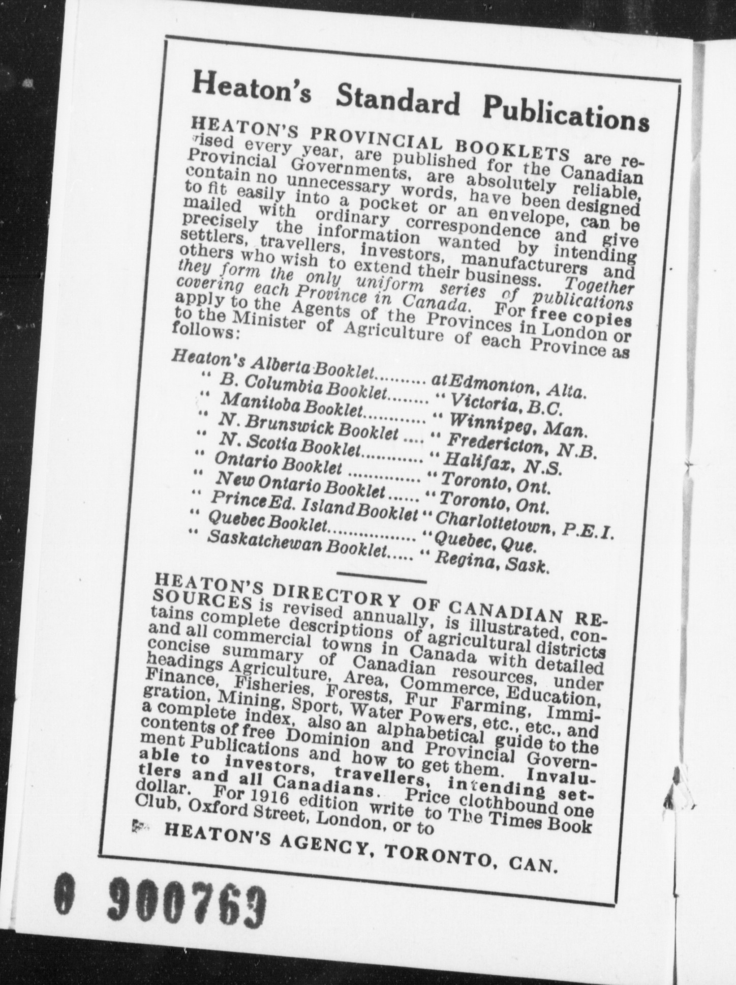 Original issued in series: Provincial booklet series.