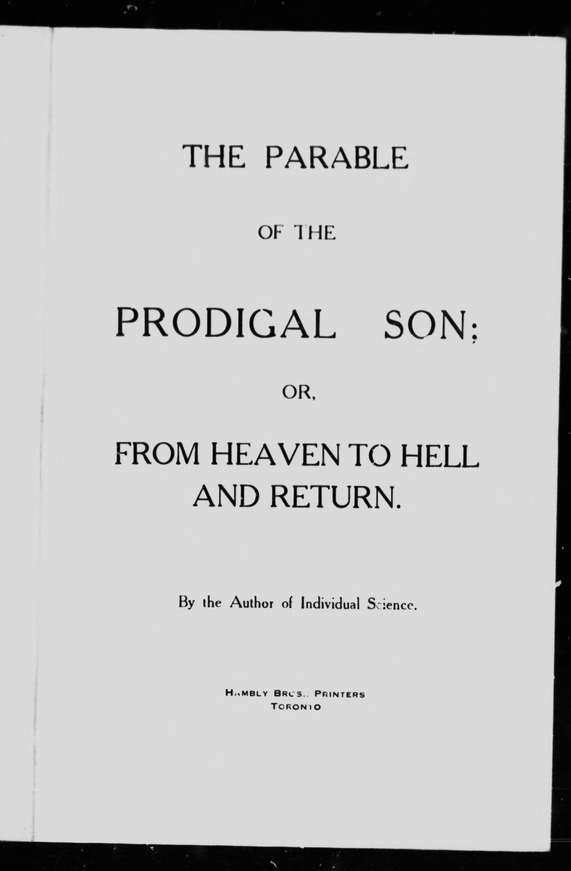 The parable of the Prodigal Son, or, From heaven to hell and return - Published