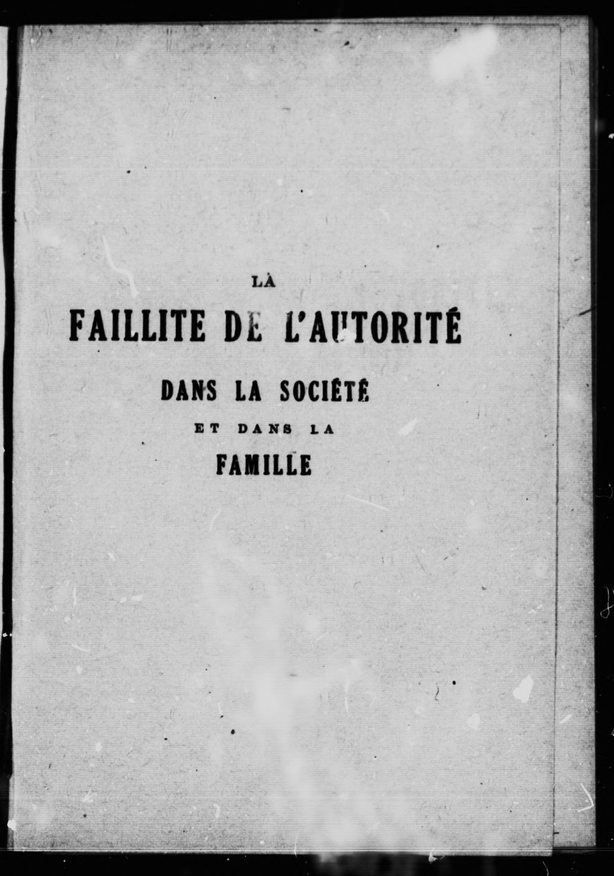 La faillite de l'autorité dans la société et dans la famille /