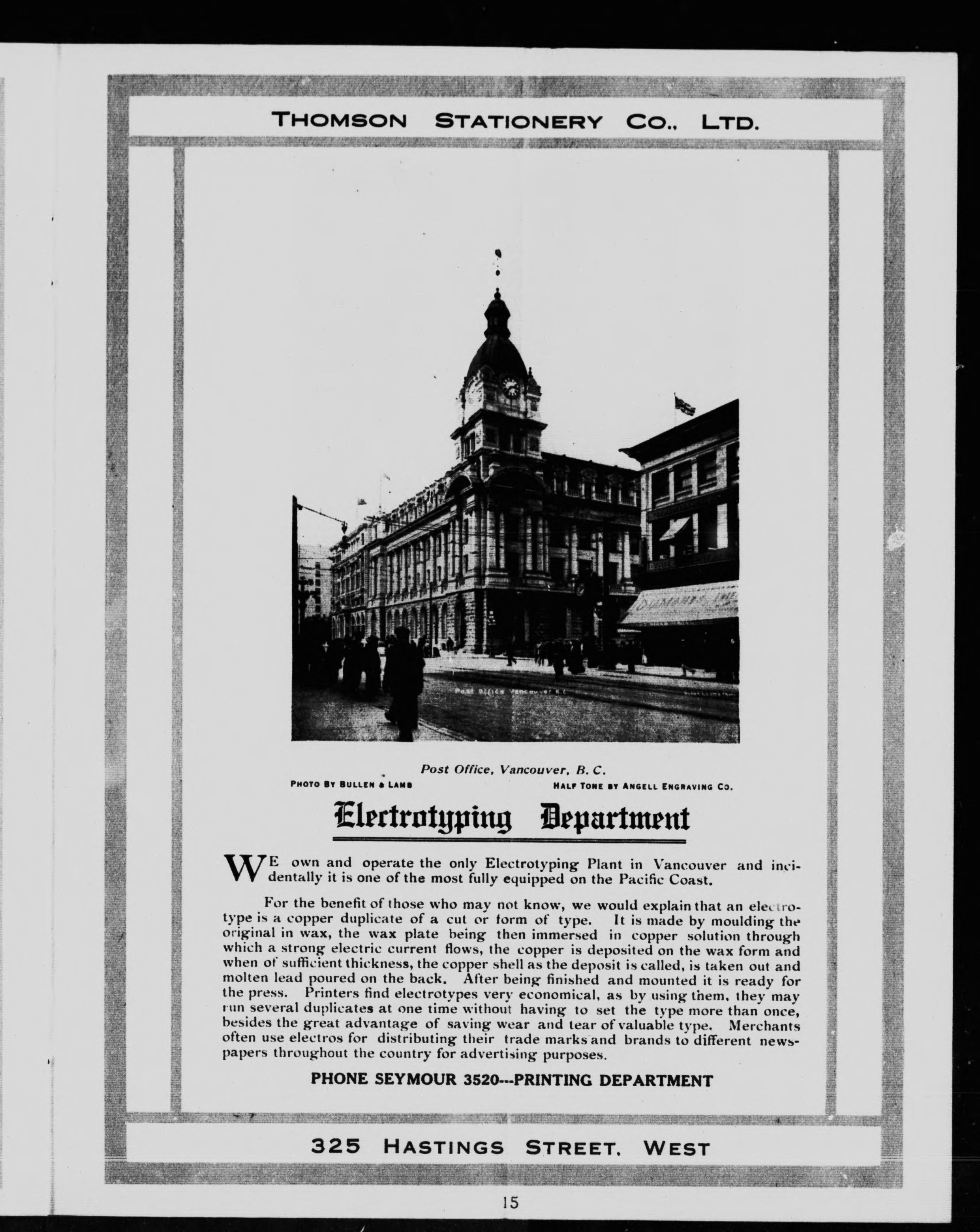 Vancouver : Thomson Stationery, [ca 1909?]; 23 images, 21 avec recherche en texte intégral