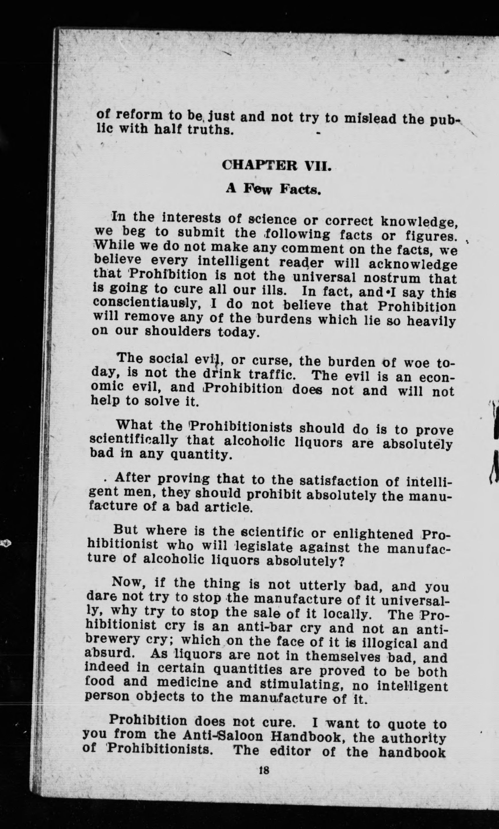 " ... I thought there was something wrong somewhere, and as I knew those Prohibition speakers got most of their data from the Anti-Saloon handbook for 1915 ..."--p. 20.