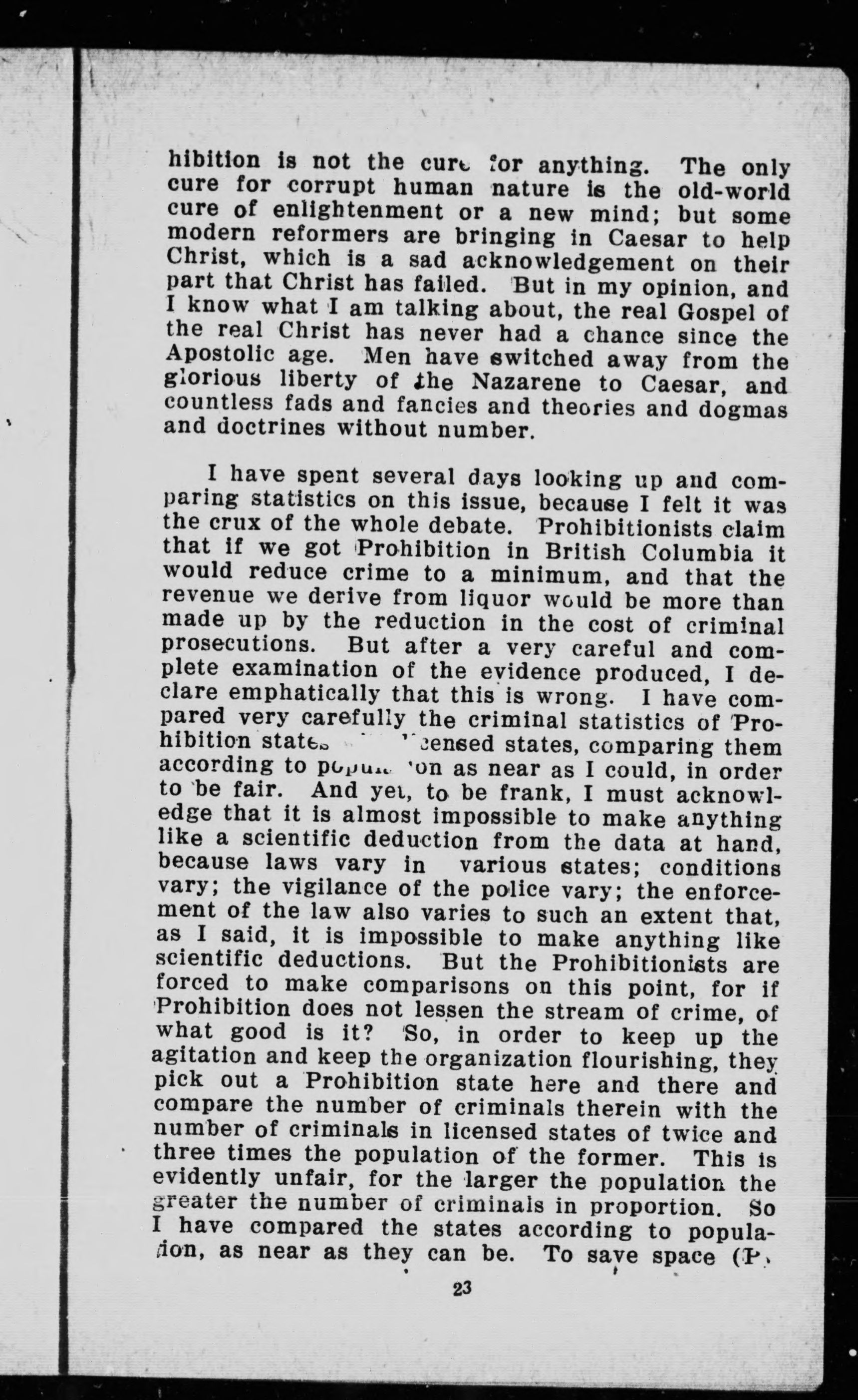 " ... I thought there was something wrong somewhere, and as I knew those Prohibition speakers got most of their data from the Anti-Saloon handbook for 1915 ..."--p. 20.