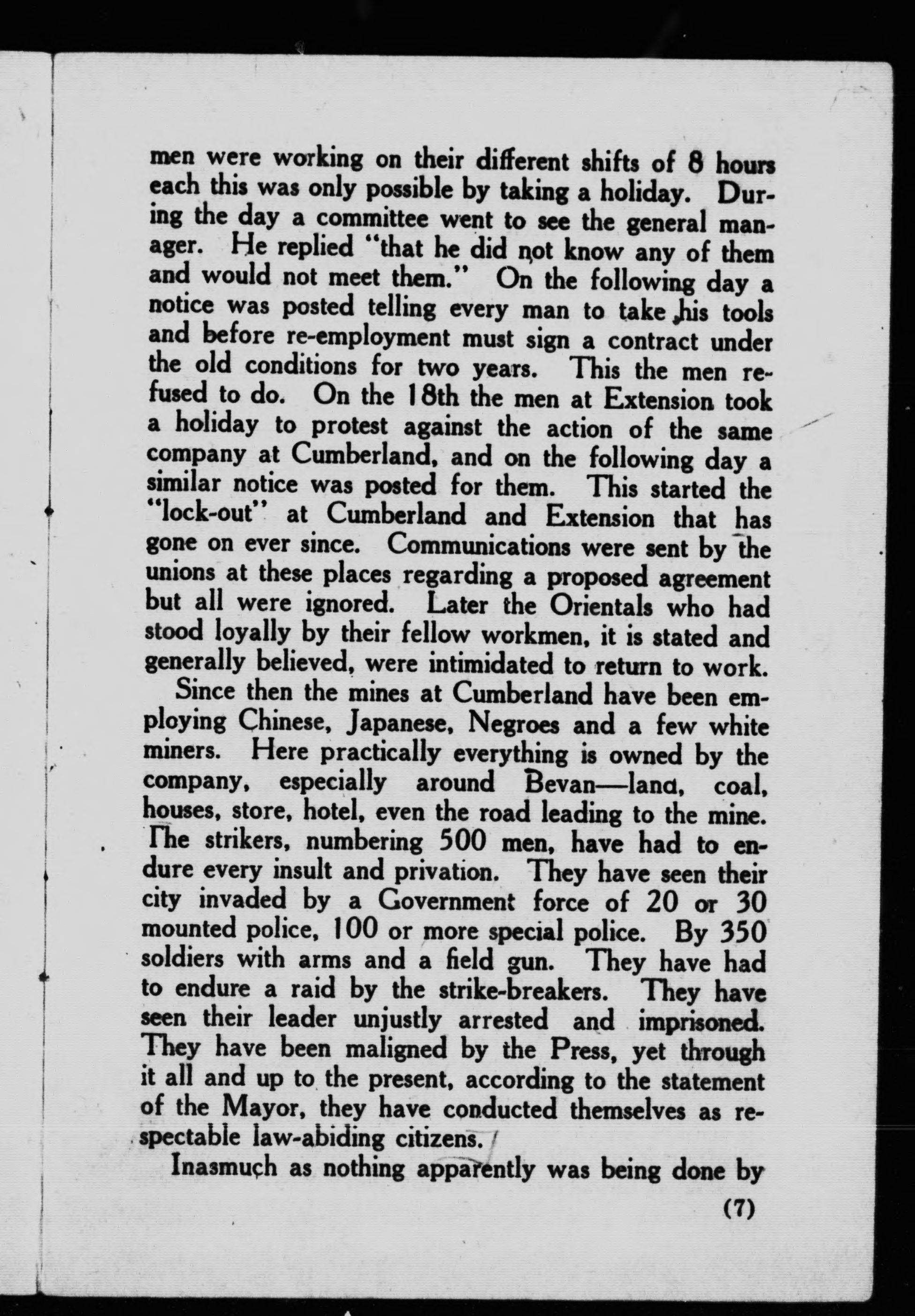 The labor trouble in Nanaimo district :