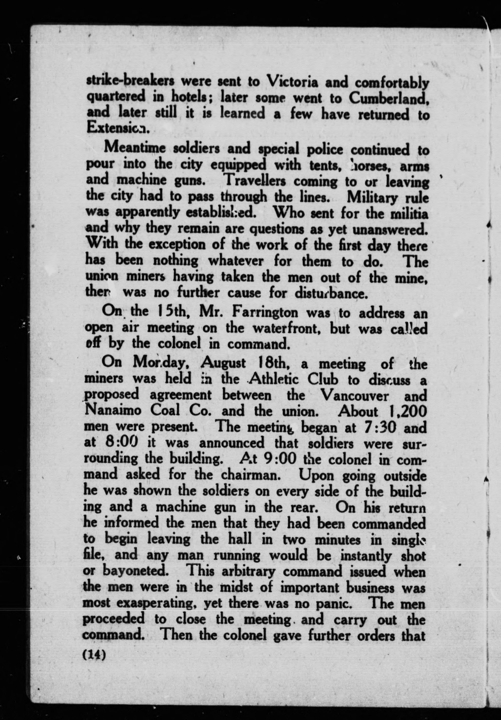 Strikes and lockouts -- Coal mining -- British Columbia -- Nanaimo.
