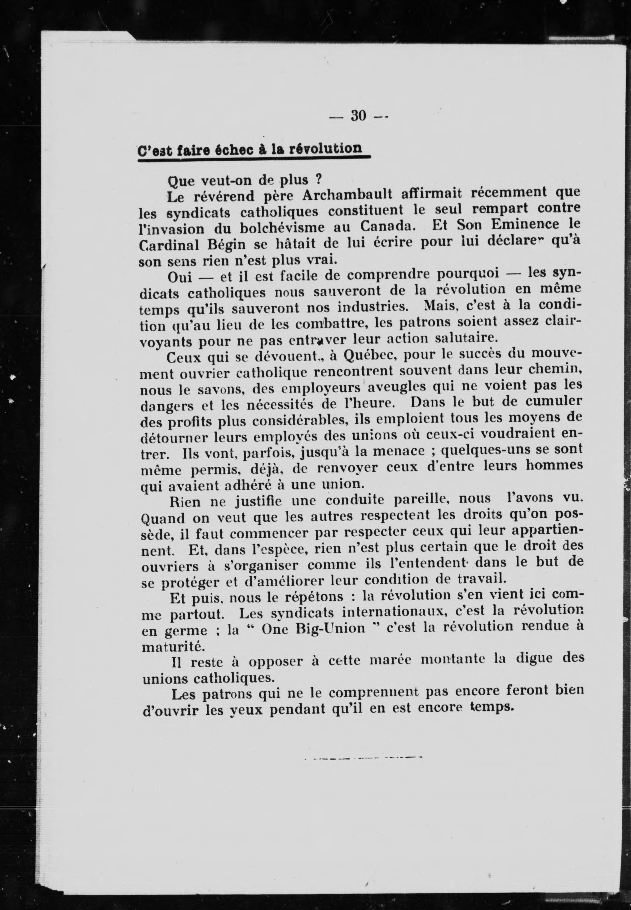 Syndicats catholiques -- Québec (Province) - Document original