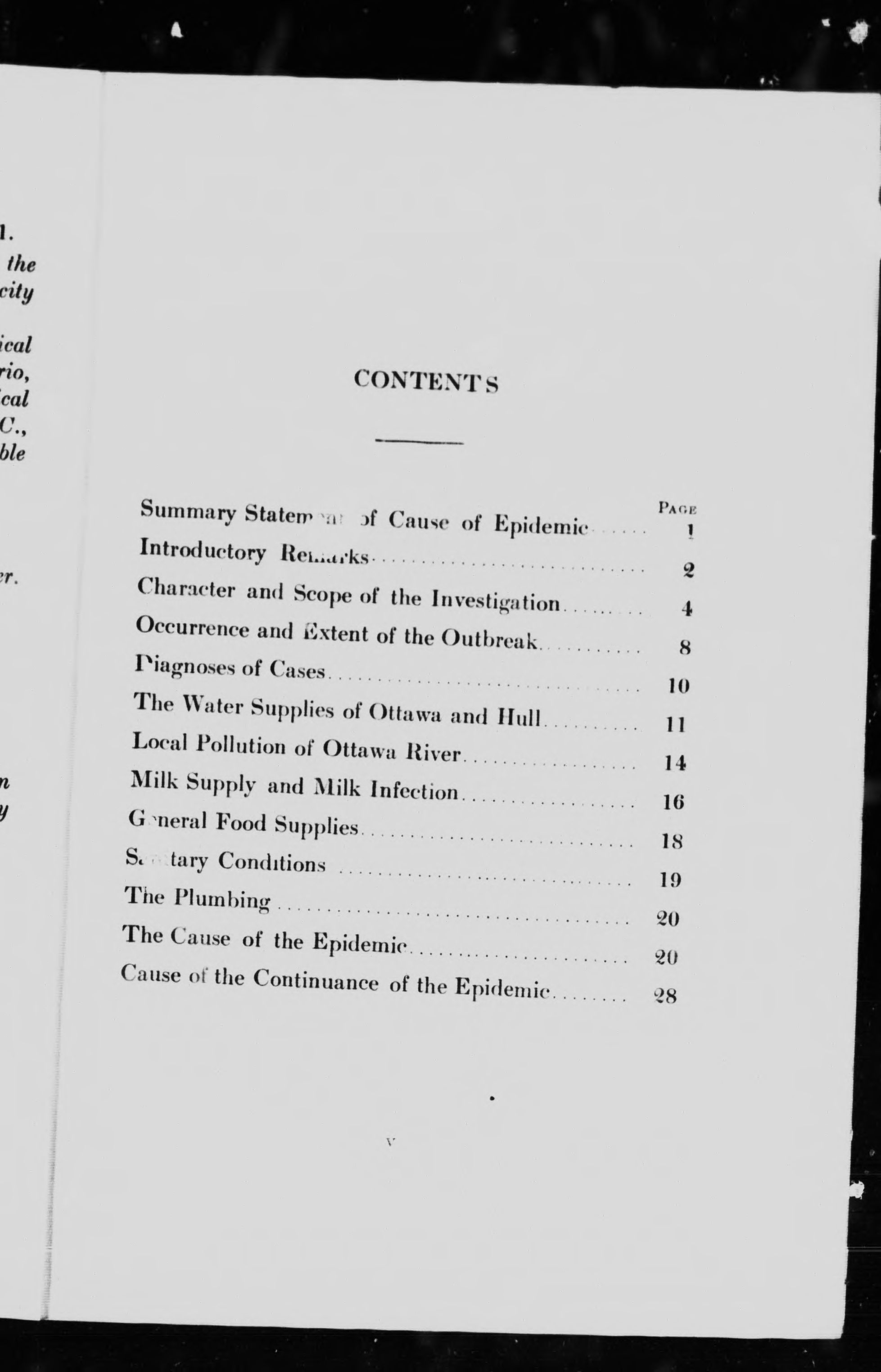 Report on the epidemic of typhoid fever occurring in the city of Ottawa, January 1st to March 19th, 1911.