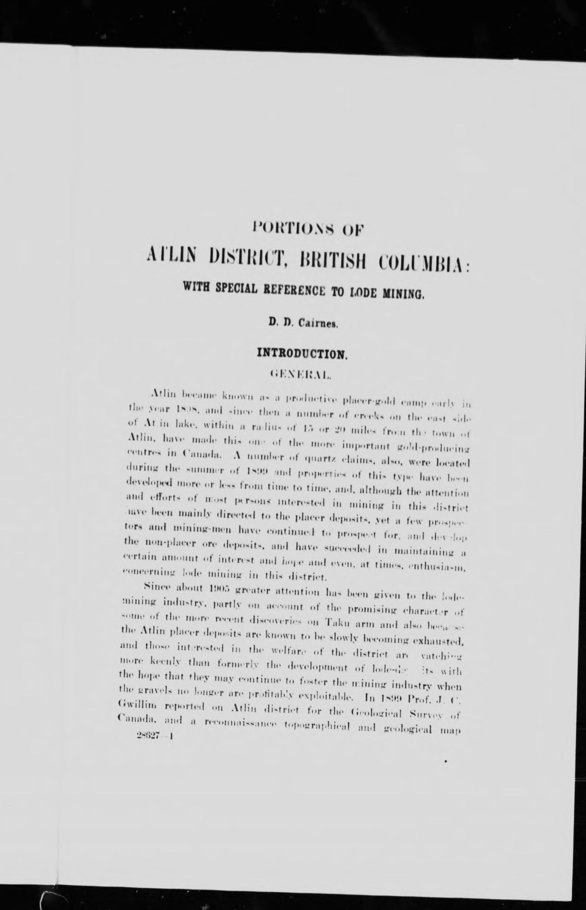 - Portions of Atlin district, British Columbia : with special reference to lode mining