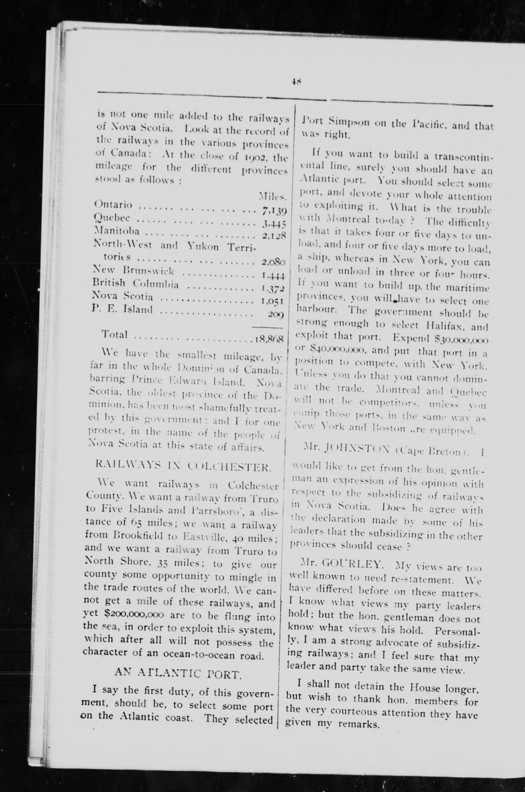 Speech of S.E. Gourley, K.C., M.P. on the transcontinental railway and the trade routes of Canada, Tuesday, September 1st, 1903.