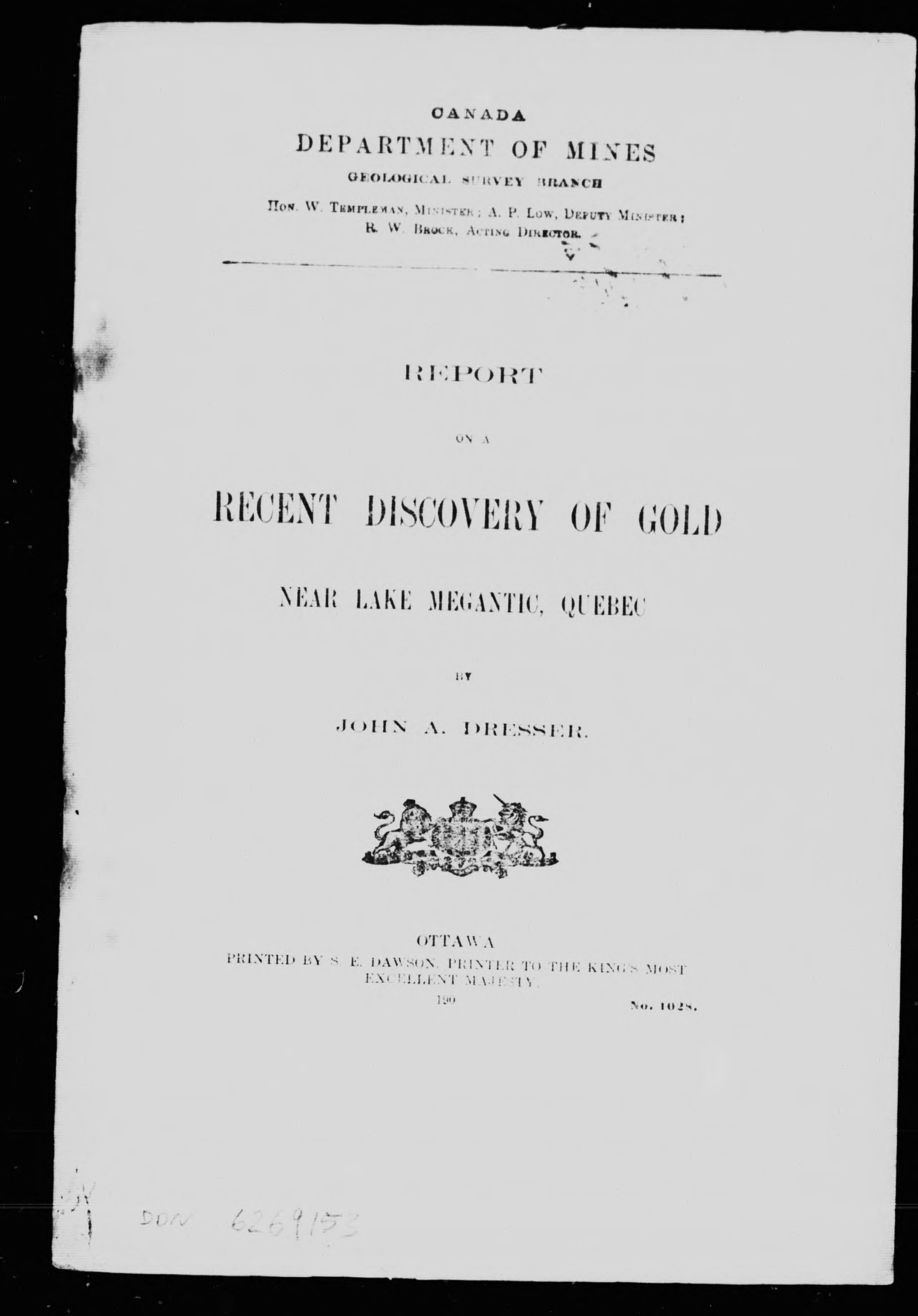 - Report on a recent discovery of gold near Lake Megantic, Quebec