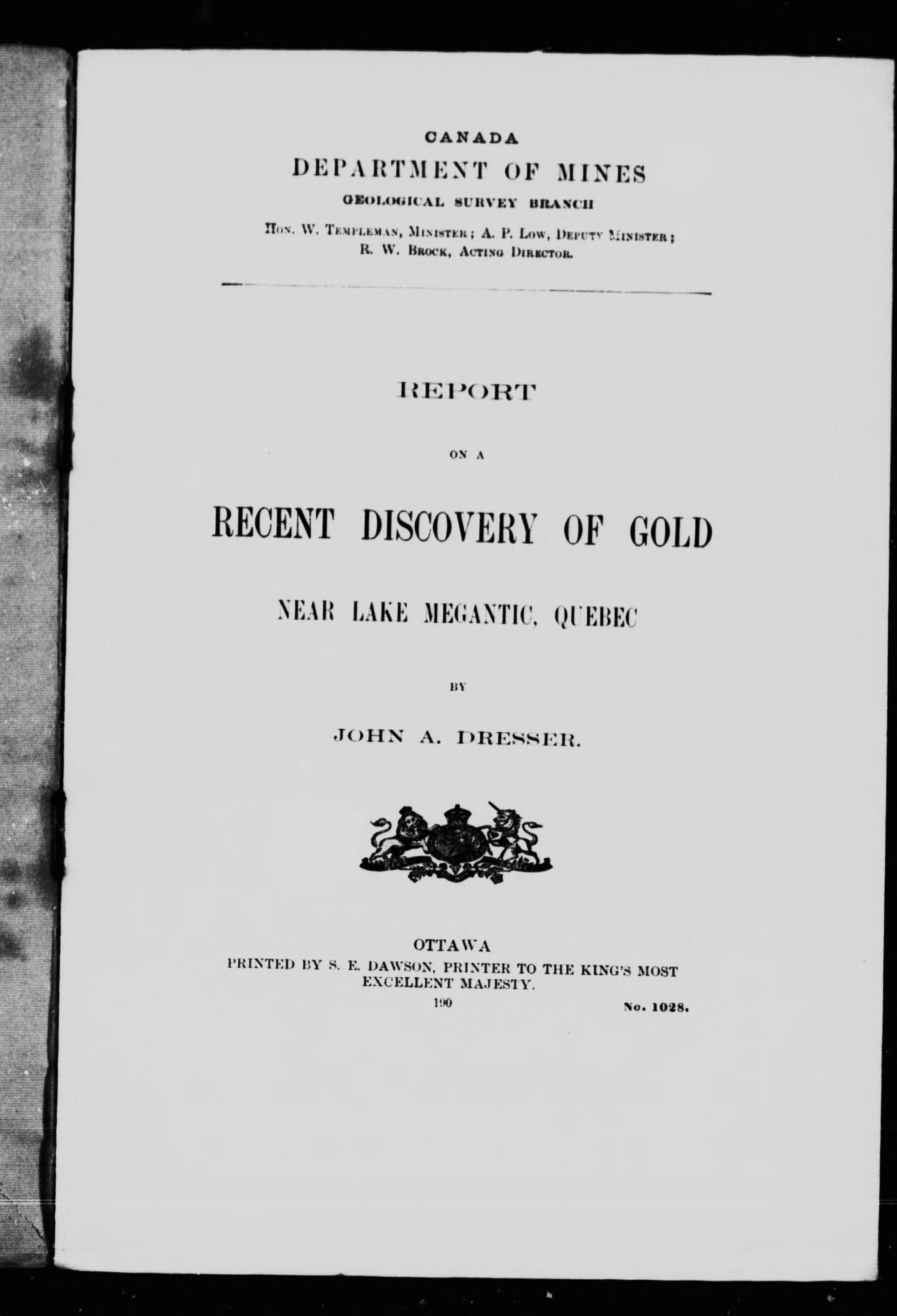 - Report on a recent discovery of gold near Lake Megantic, Quebec