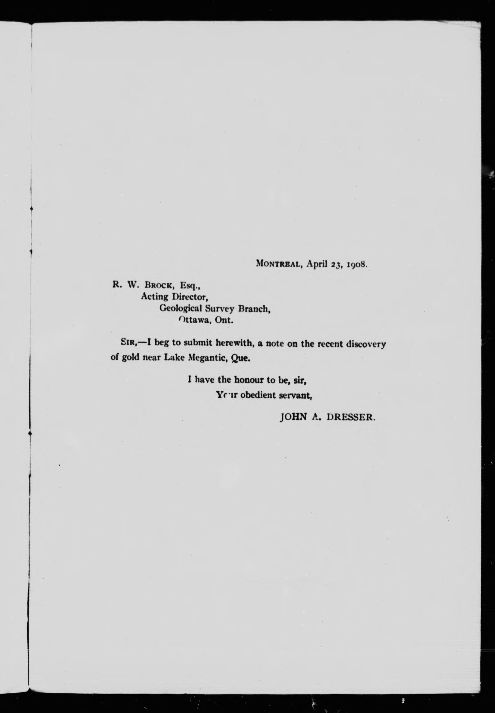 Report on a recent discovery of gold near Lake Megantic, Quebec