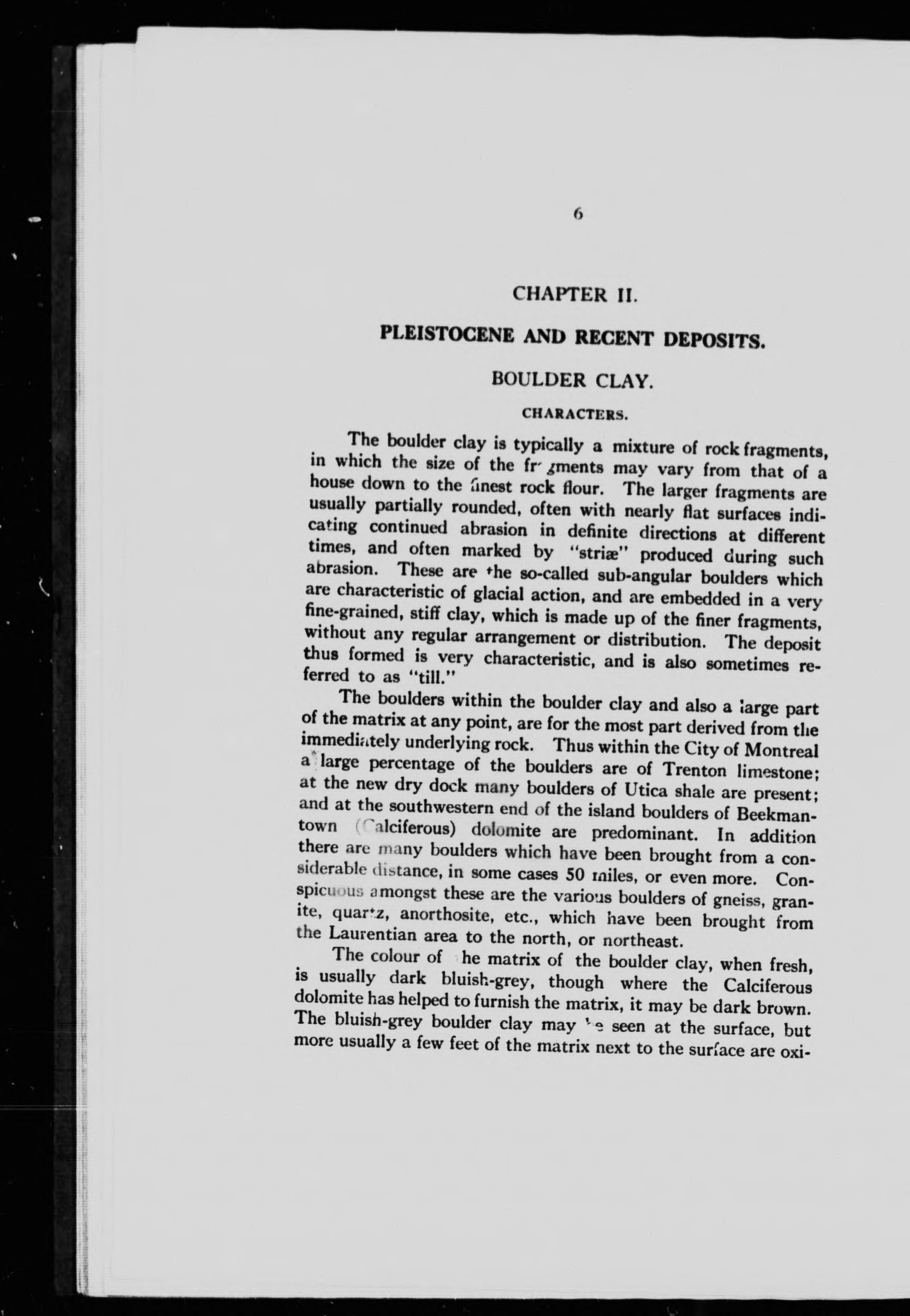 The Pleistocene and recent deposits of the Island of Montreal