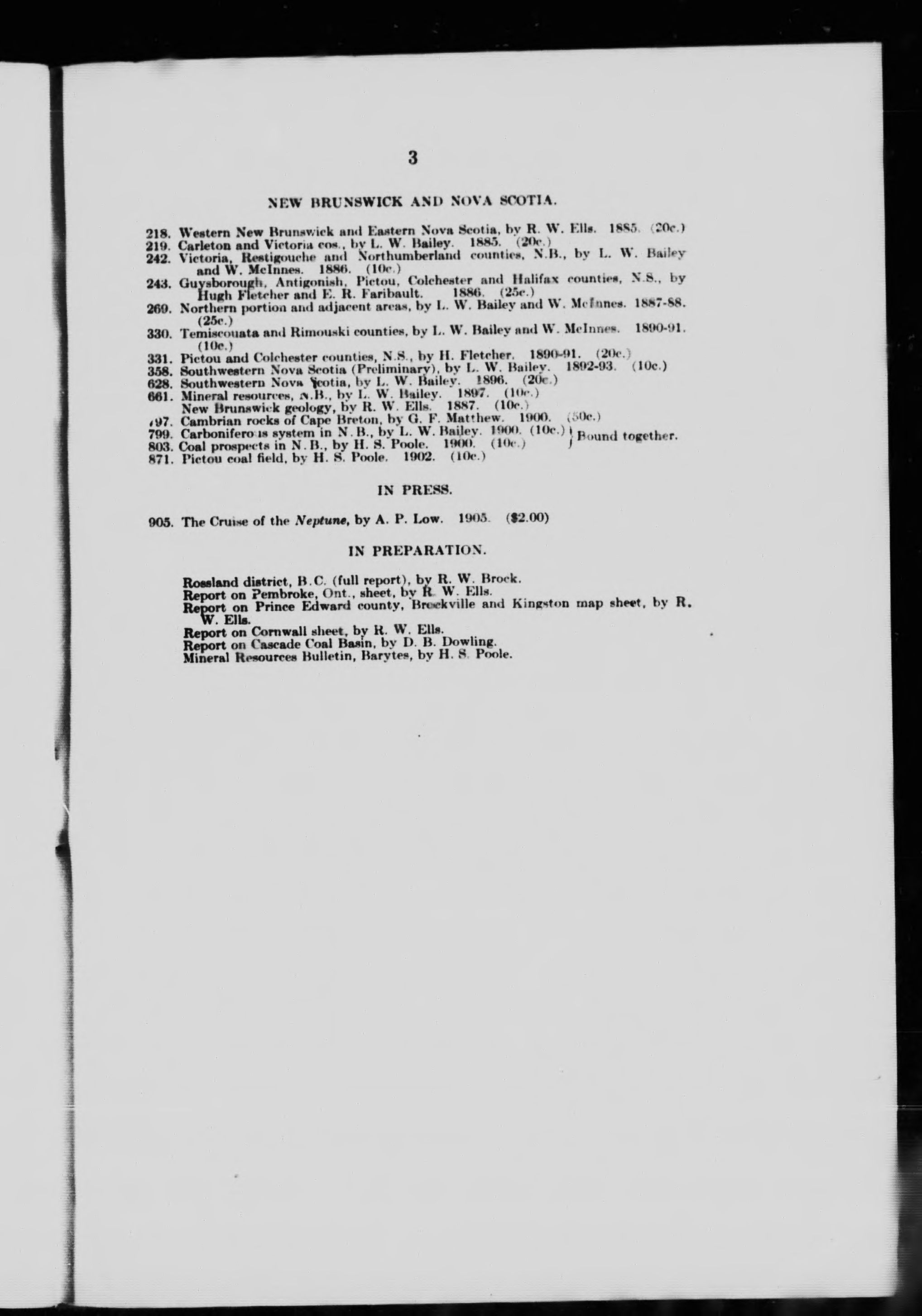 "Selected list of reports (since 1885) of special economic interest published by the Geological Survey of Canada": pages [1]-3.