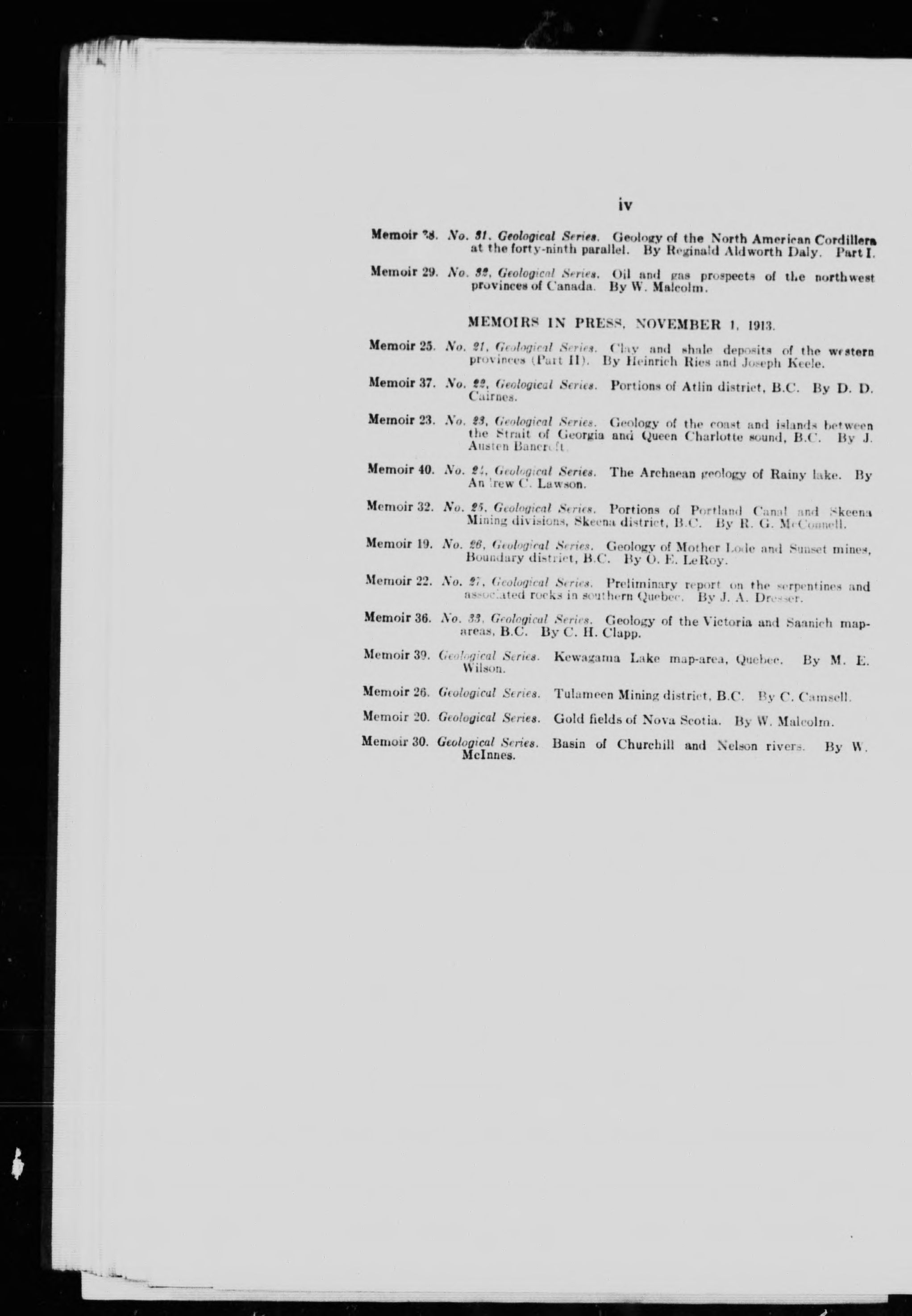 Memoir 32. Geological series / Geological Survey of Canada ; 25.