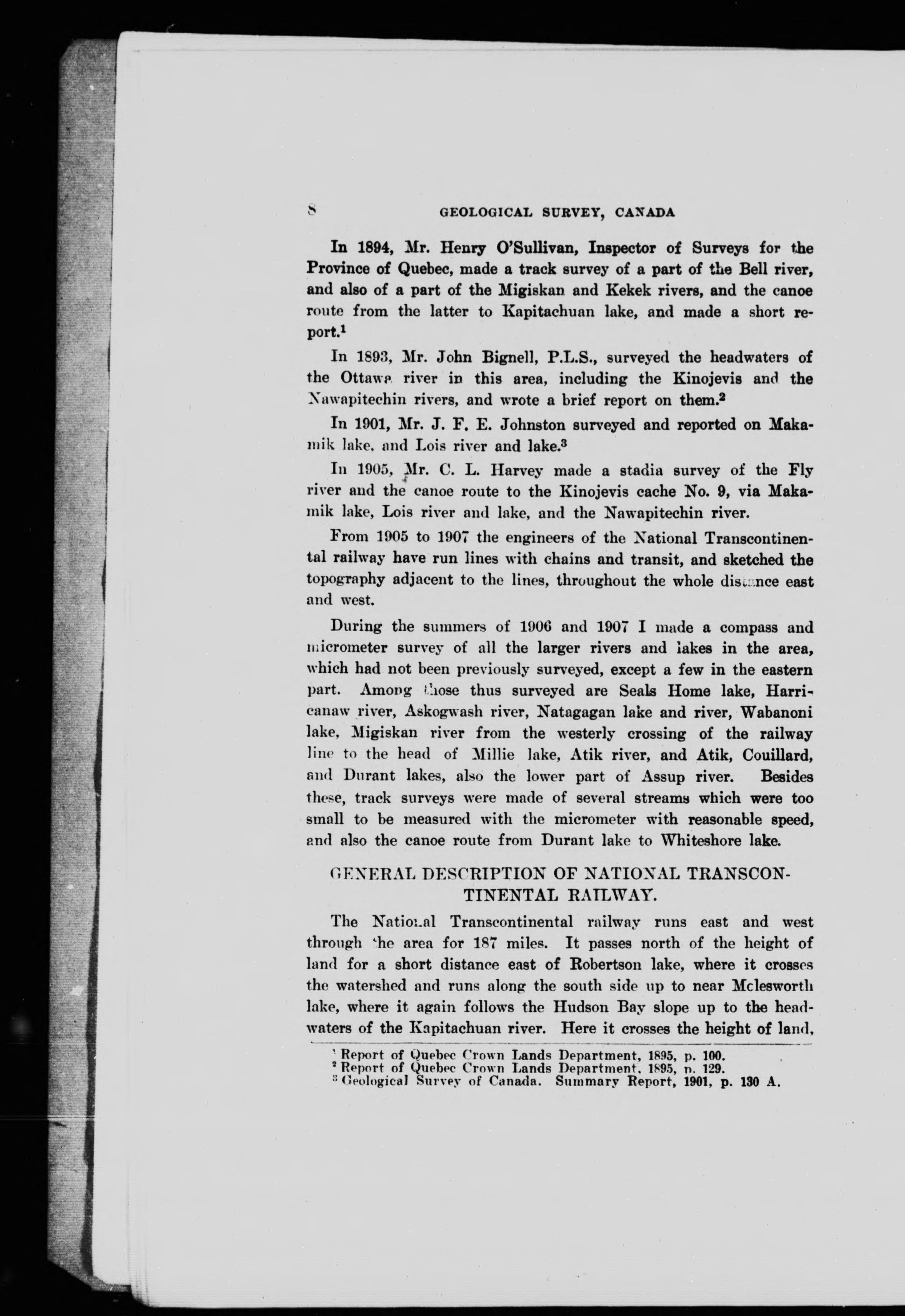 Geological reconnaissance along the line of the National Transcontinental Railway in western Quebec