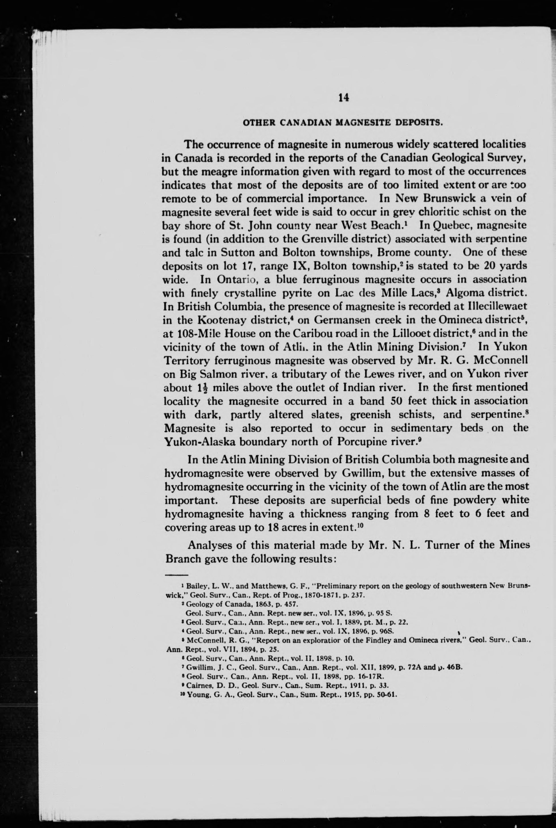 Magnesite deposits of Grenville district, Argenteuil County, Quebec