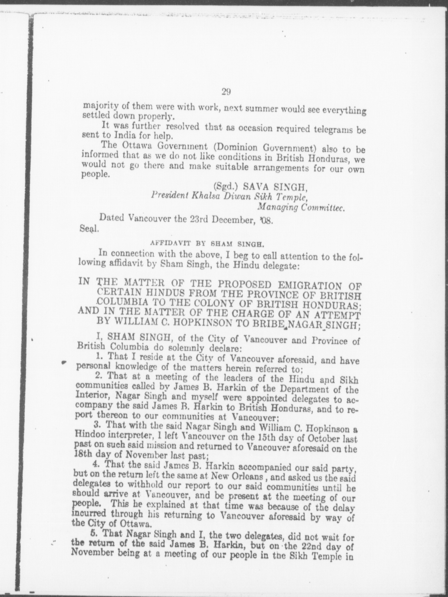 - The East Indians in British Columbia : a report regarding the proposal to provide work in British Honduras for the indigent unemployed among them.