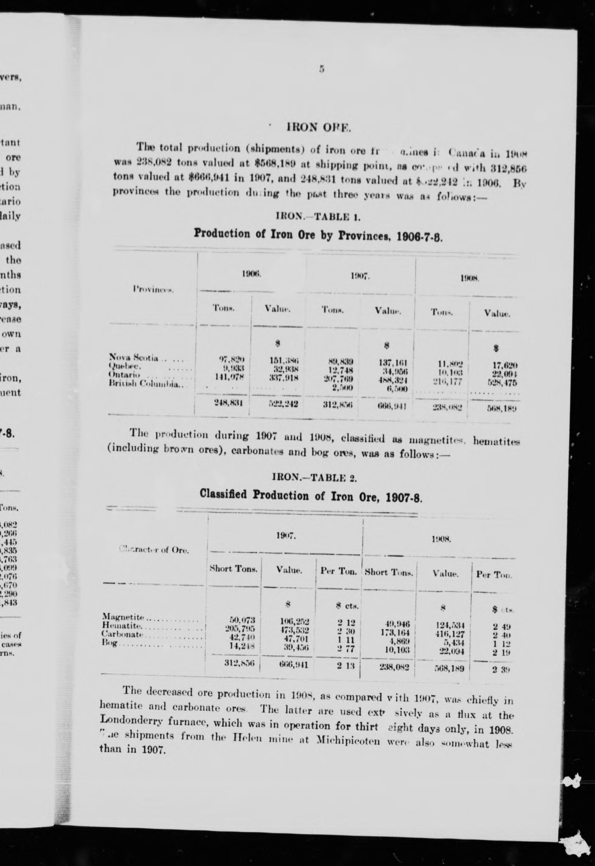 - The production of iron and steel in Canada during the calendar year 1907 and 1908