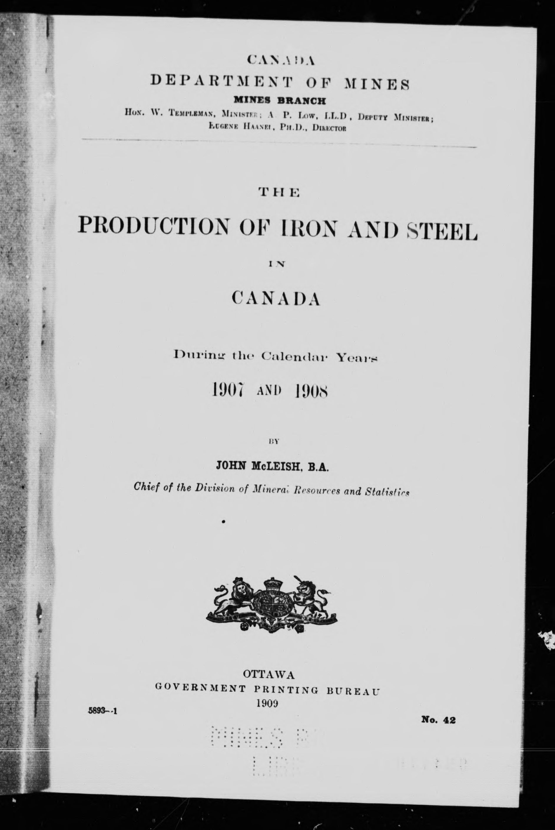 The production of iron and steel in Canada during the calendar year 1907 and 1908 /