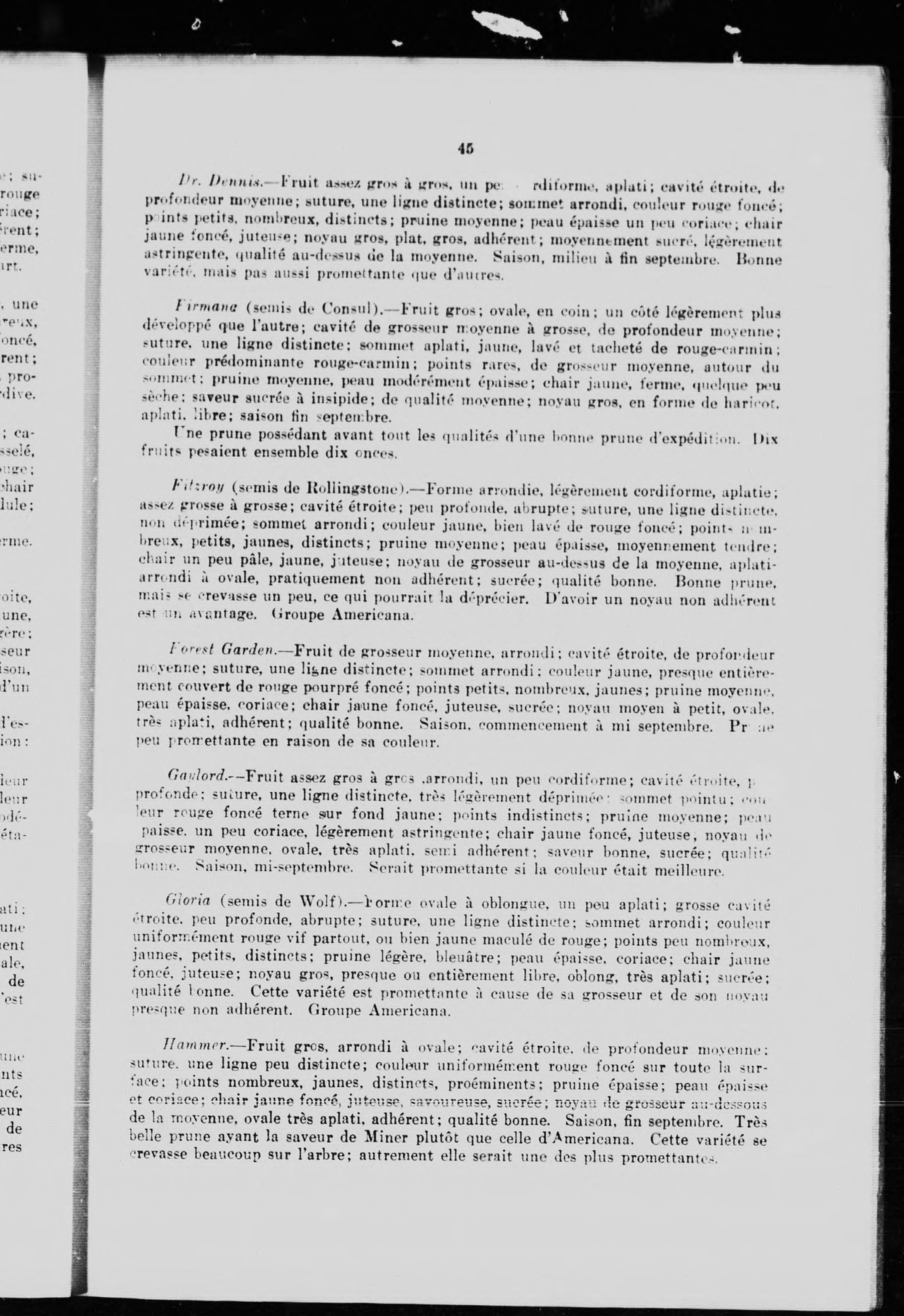 Culture du prunier : prunes adaptées aux divers districts du Canada et descriptions de variétés