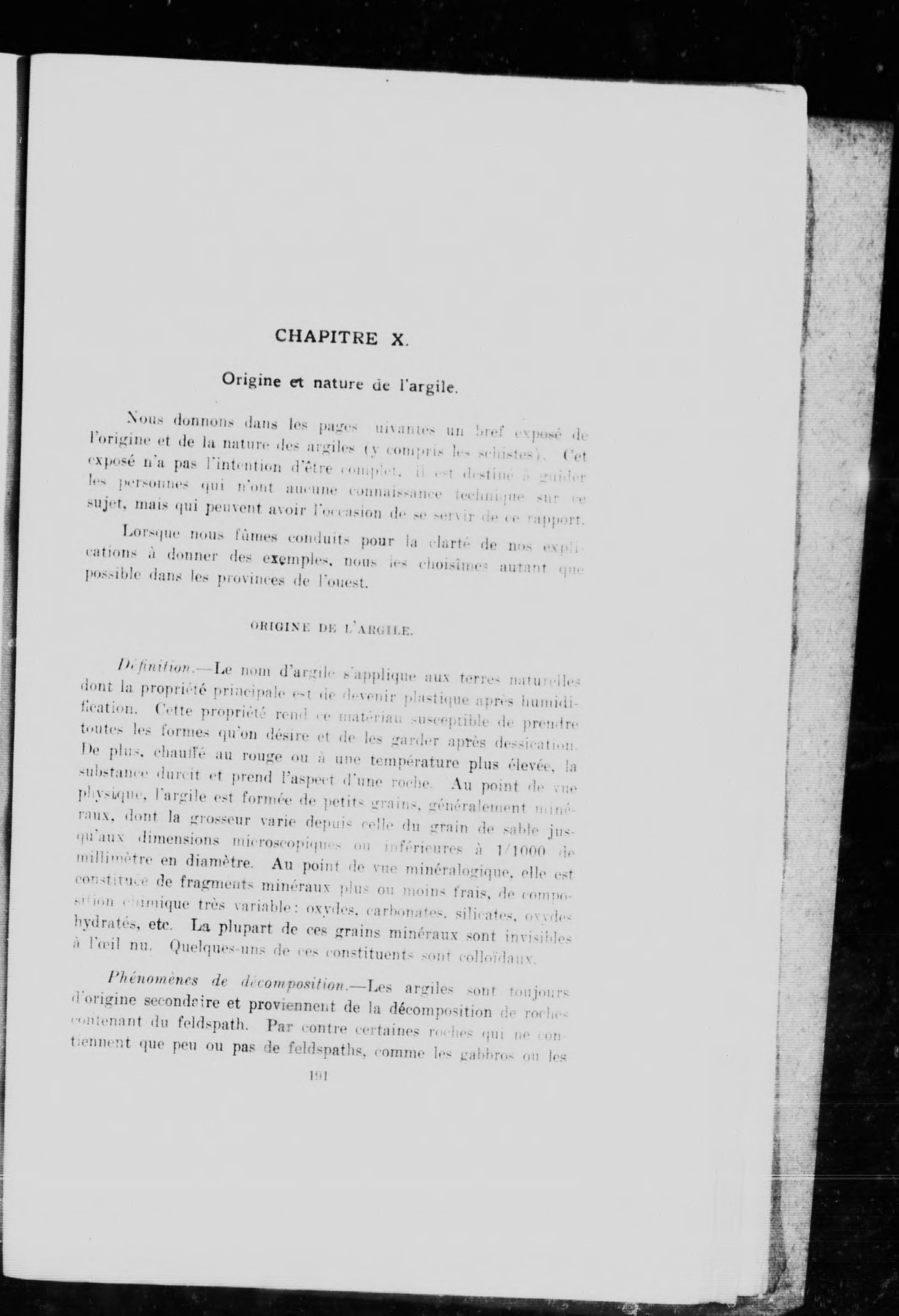 Rapport préliminaire sur les dépôts d'argiles et de schistes des provinces de l'ouest