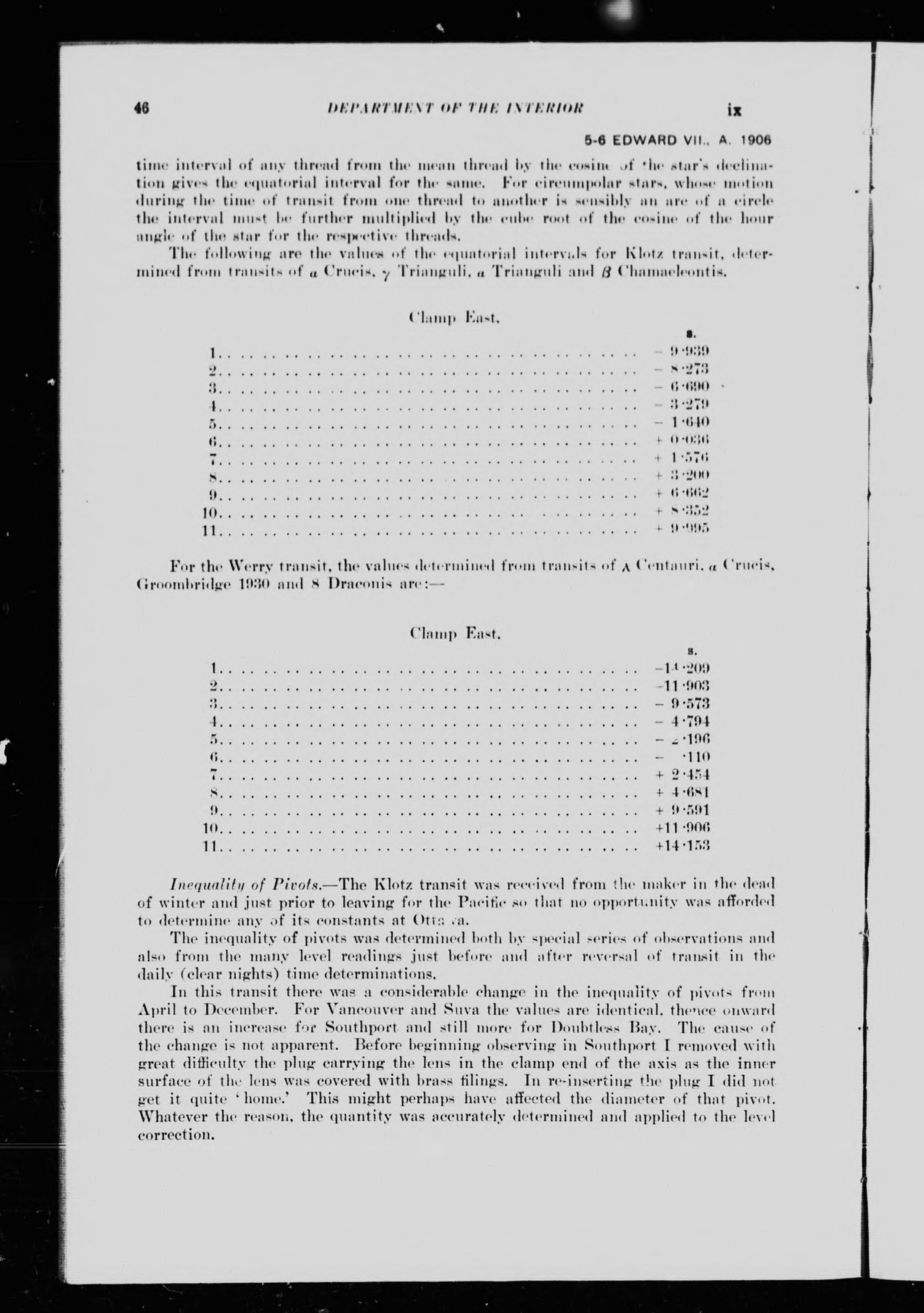 At head of title: 5-6 Edward VII. Sessional Paper No. 25b. A. 1906. Appendix 3. Report of the chief astronomer, 1905.