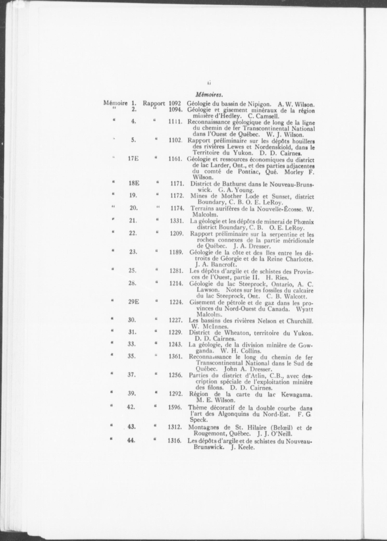 "Publications en français du Ministére des mines parues depuis le catalogue de juillet 1914": v pages à la fin.