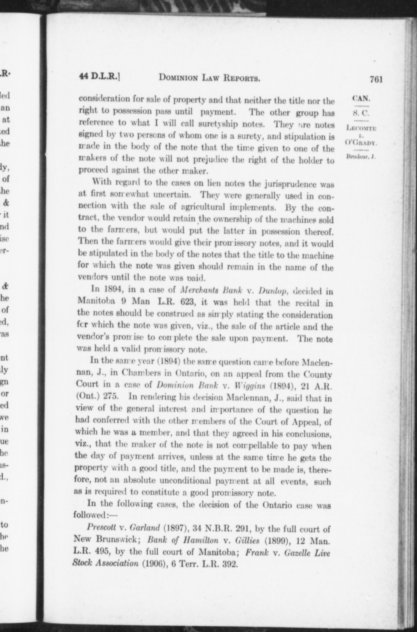 "For Alphabetically Arranged Table of Annotations to be found in Vols. I-XLIV, D.L.R., see Pages vii-xviii."