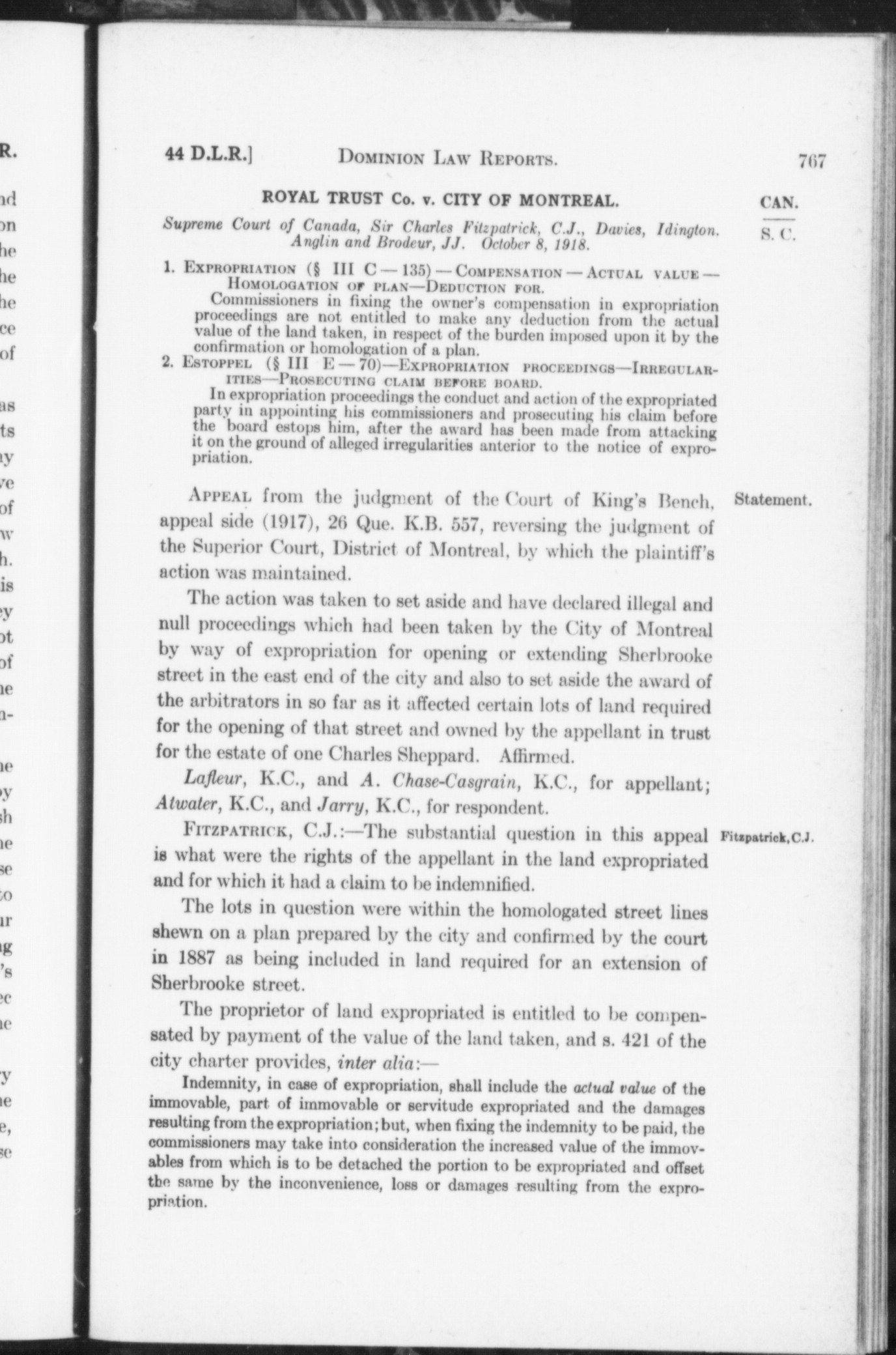 "For Alphabetically Arranged Table of Annotations to be found in Vols. I-XLIV, D.L.R., see Pages vii-xviii."