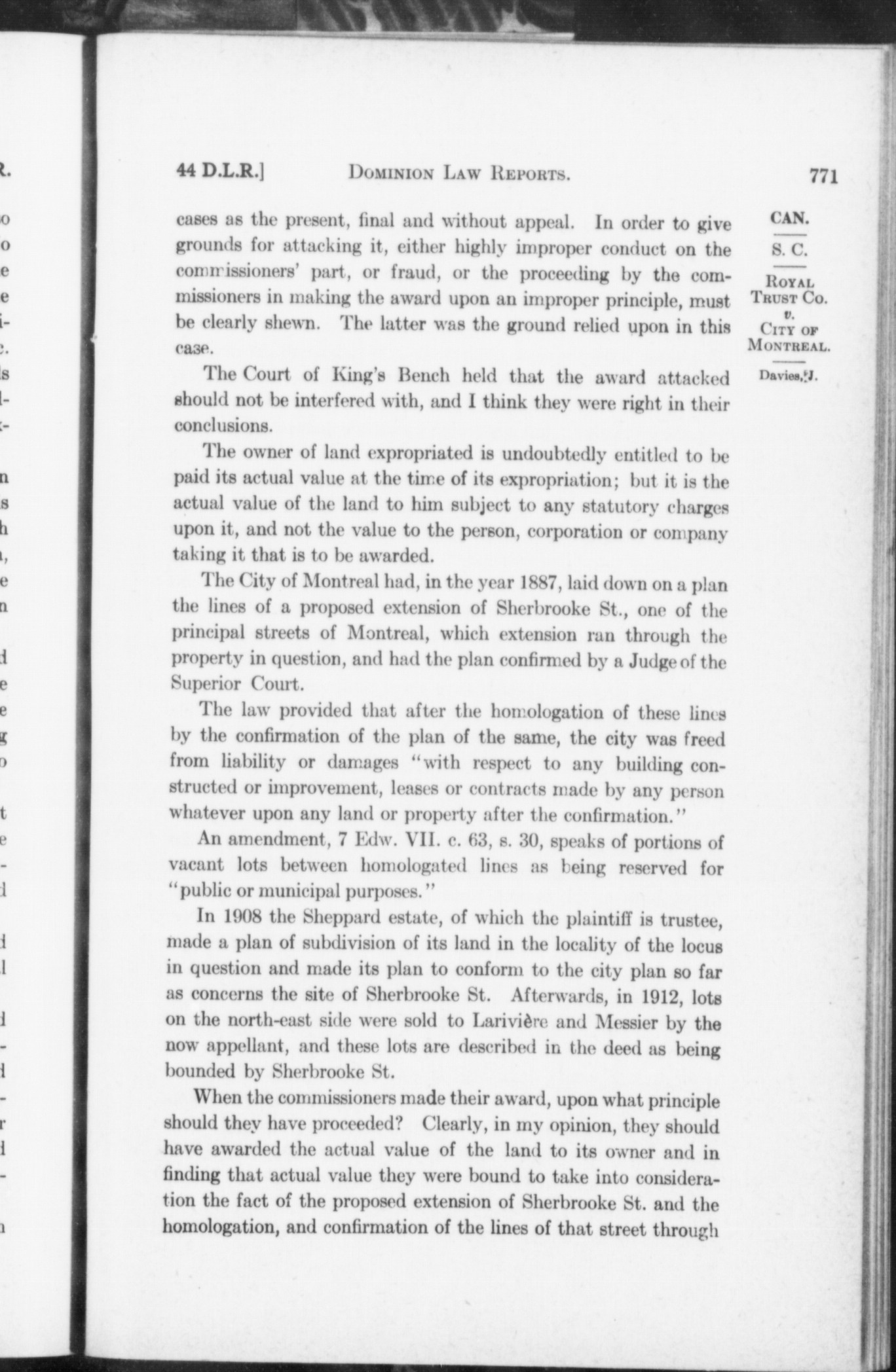 "For Alphabetically Arranged Table of Annotations to be found in Vols. I-XLIV, D.L.R., see Pages vii-xviii."