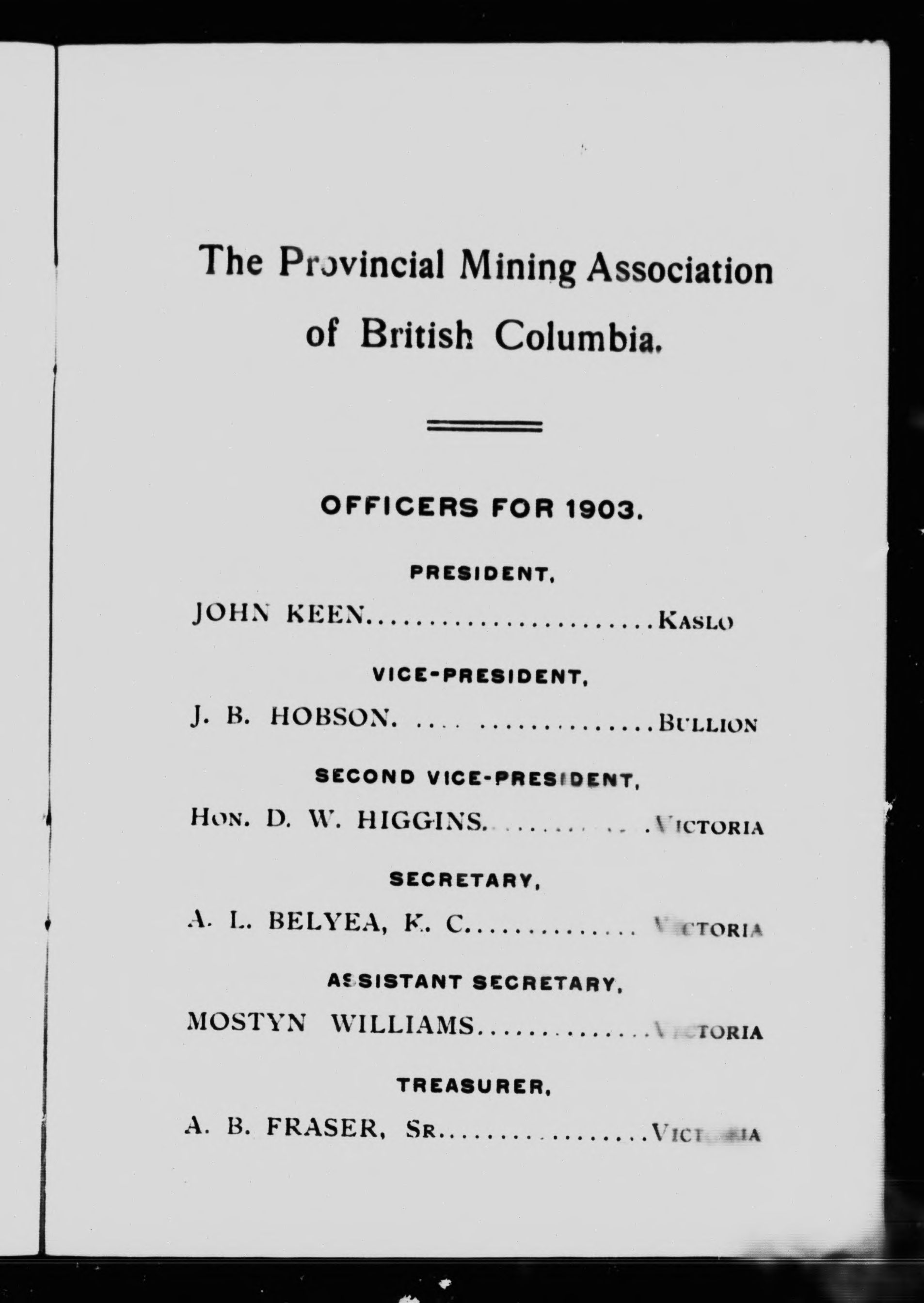 Cover title: Provincial Mining Association of British Columbia : organized at Victoria, B.C., February 25th, 1903 : constitution and by-laws.