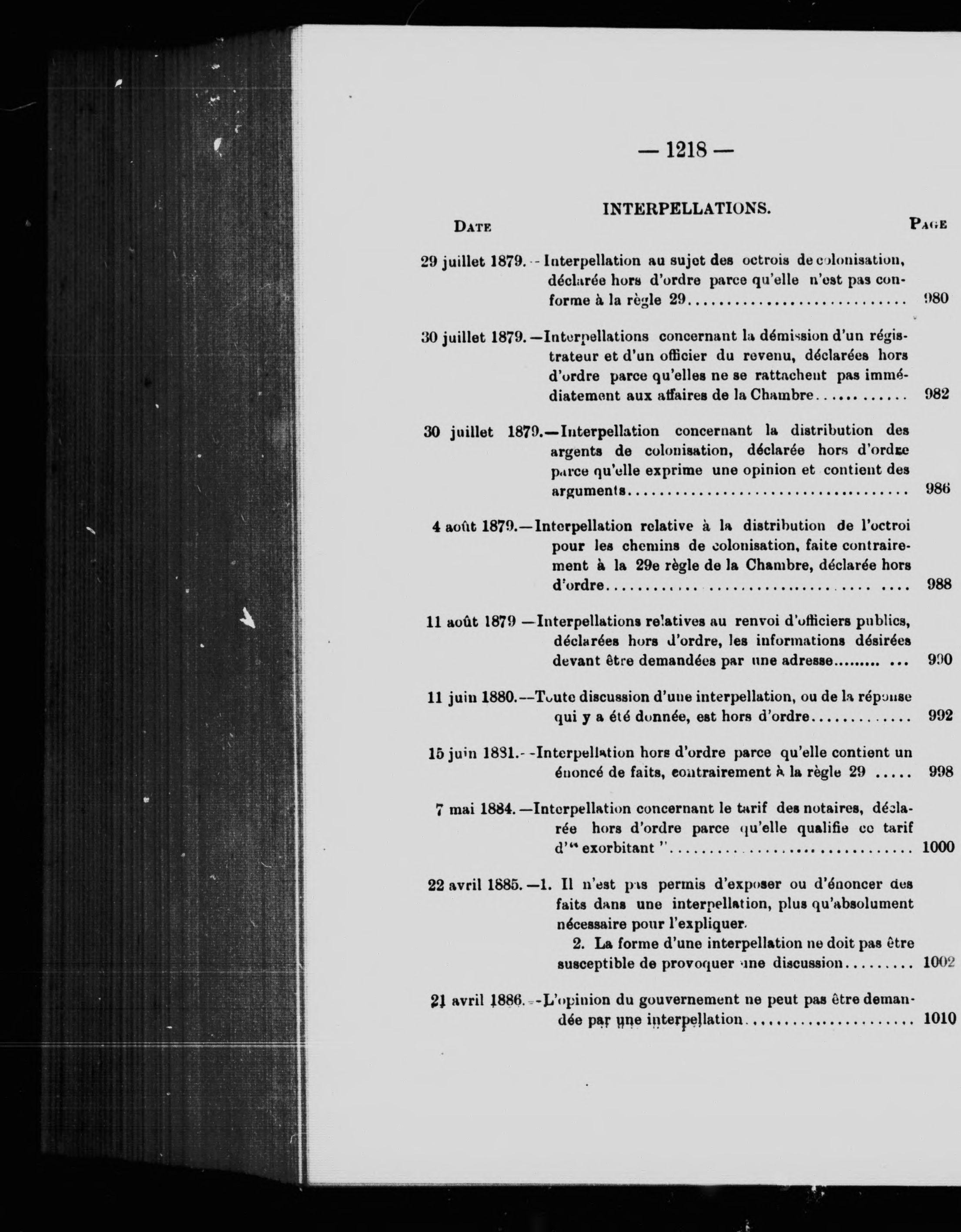 Décisions des orateurs de l'Assemblée législative de la province de Québec, 1867-1901