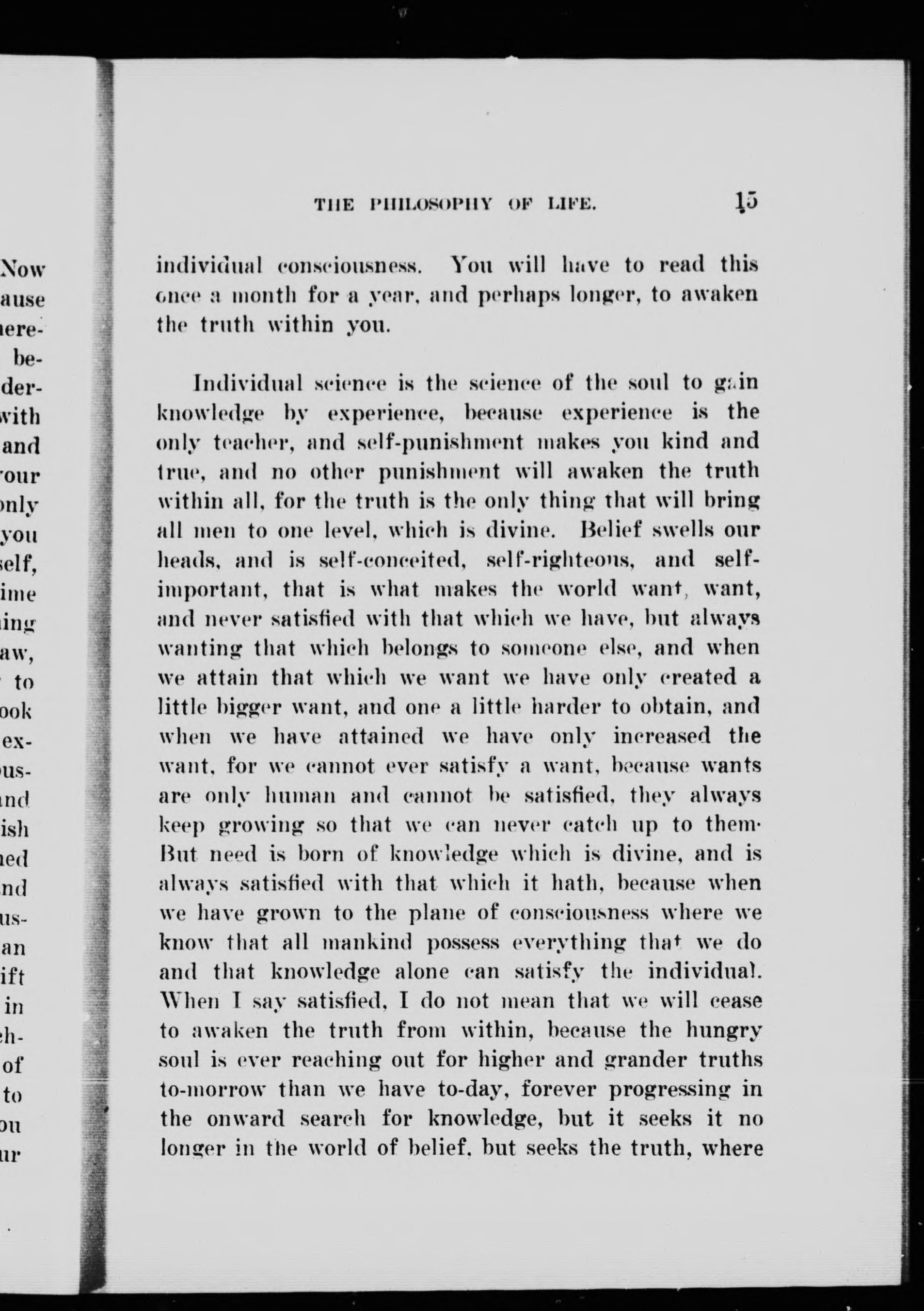 - Individual science, the philosophy of life