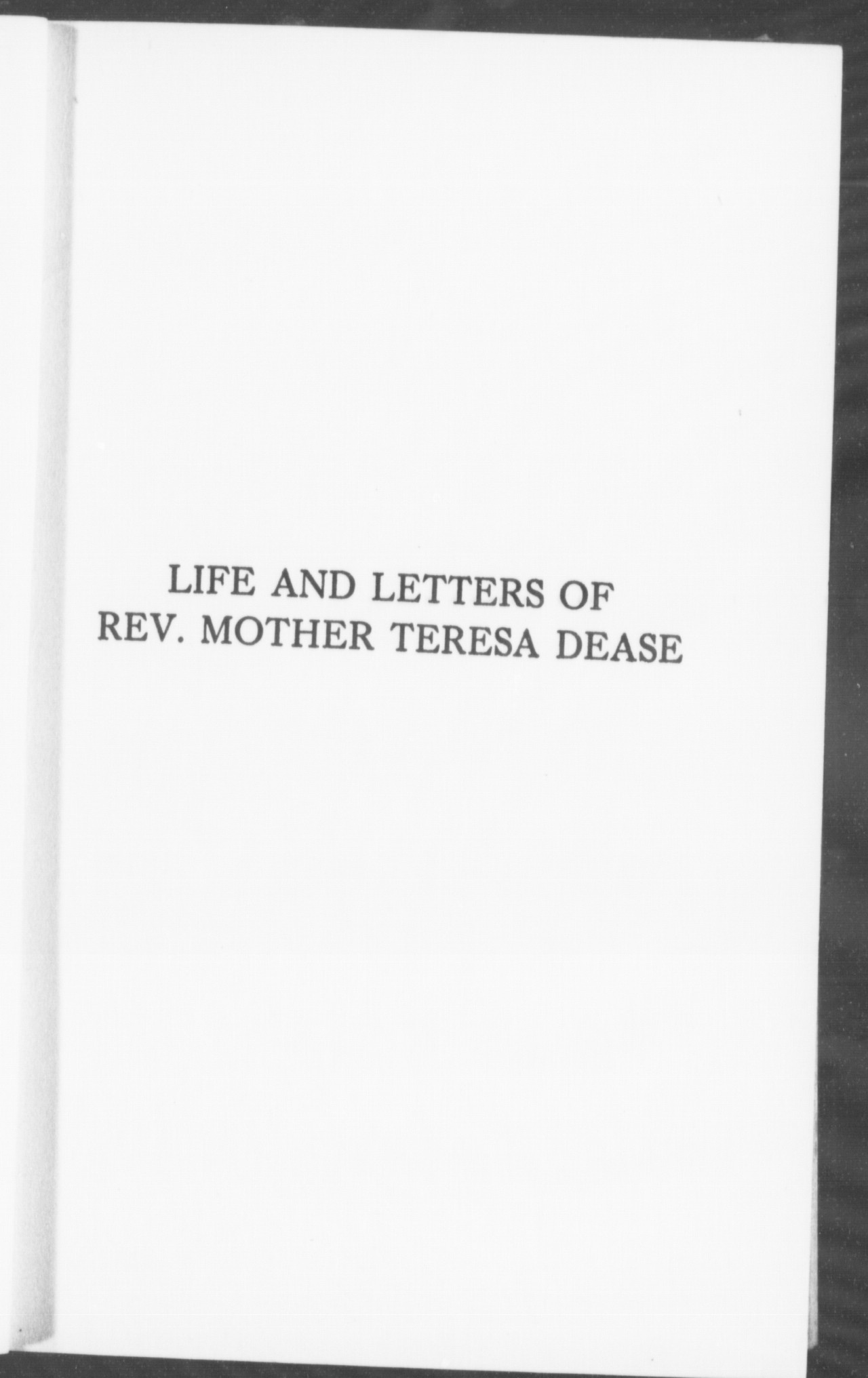 Life and letters of Rev. Mother Teresa Dease : foundress and superior general of the Institute of the Blessed Virgin Mary in America