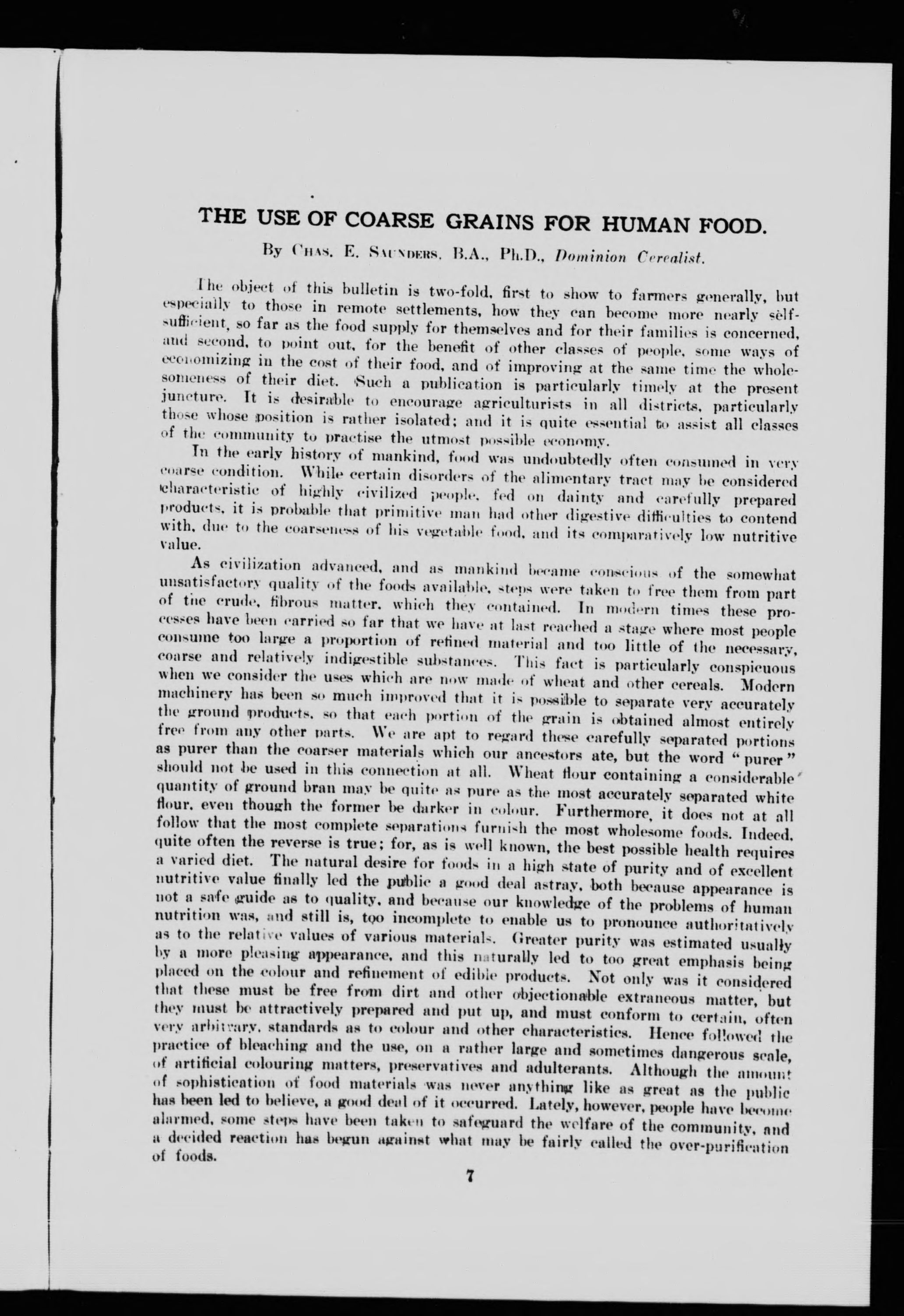 The use of coarse grains for human food /