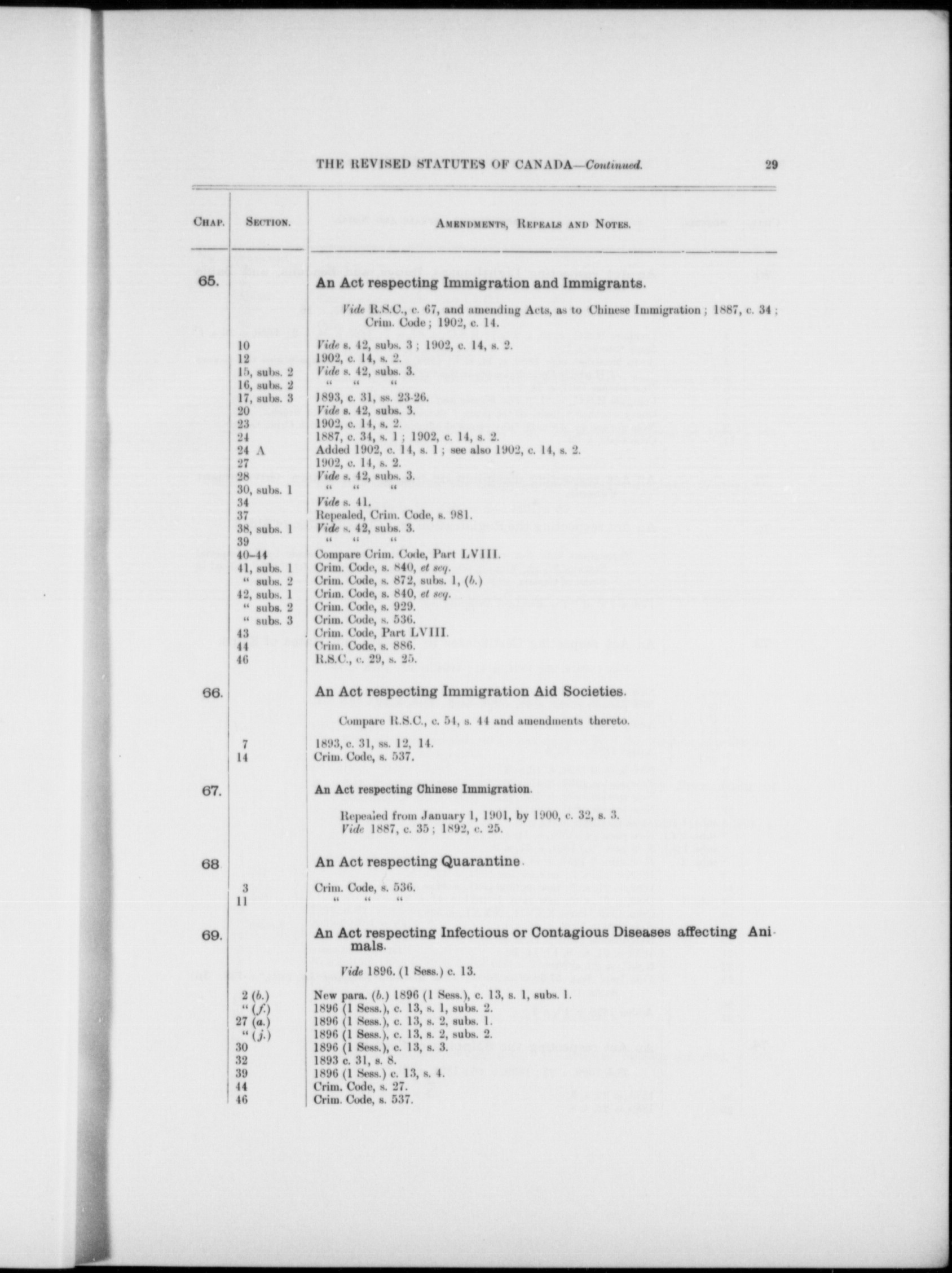 - Chronological table of the public general statutes of the Parliament of Canada : from the revised statutes, 1887 to the acts passed in the session of 1902, 2nd Edward VII., both inclusive : showing which of them, or what parts of them, are in force on July 1, 1902, and by what legislation each of them, since being passed, has been affected
