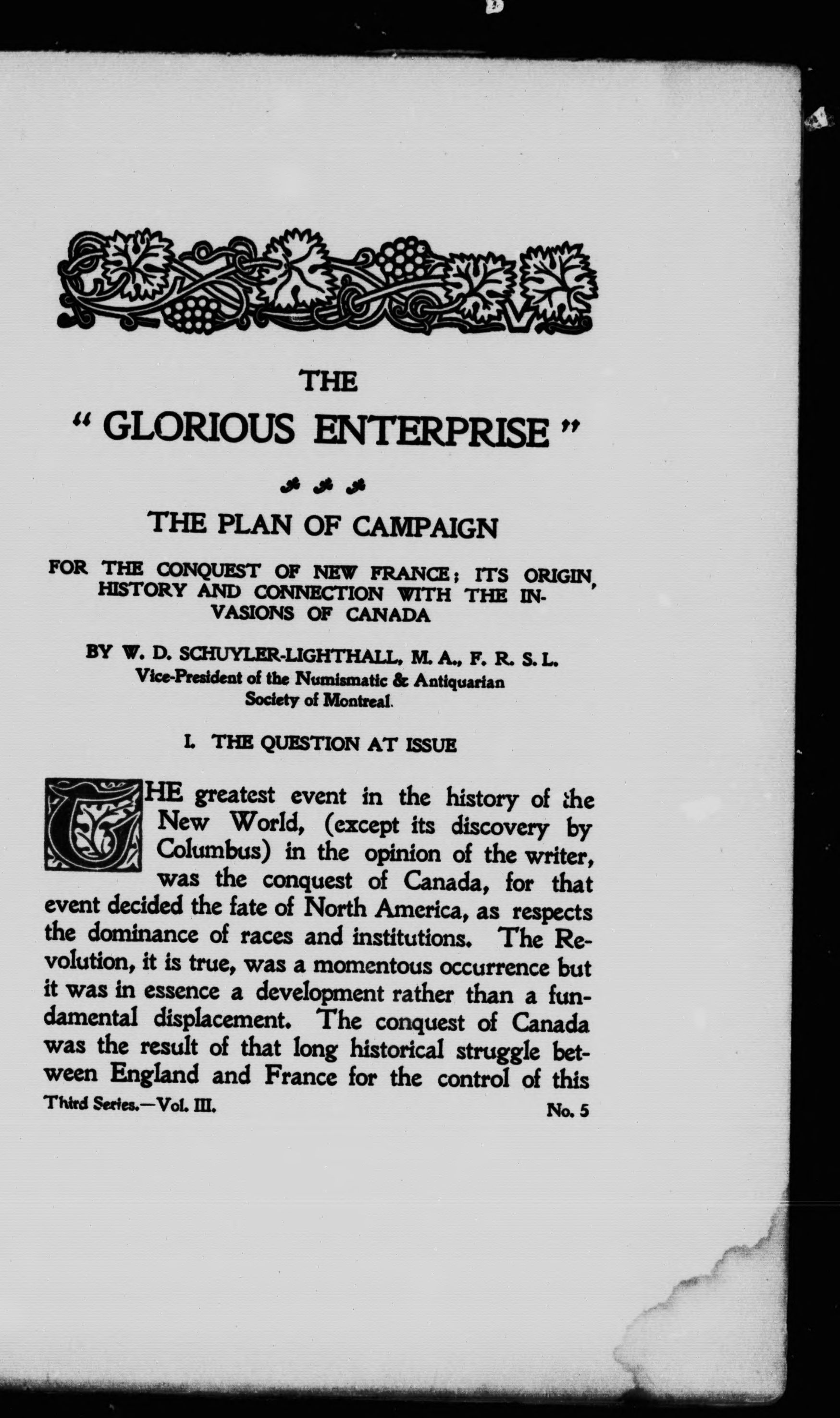 - The "glorious enterprise" : the plan of campaign for the conquest of New France, its origin, history and connections with the invasions of Canada