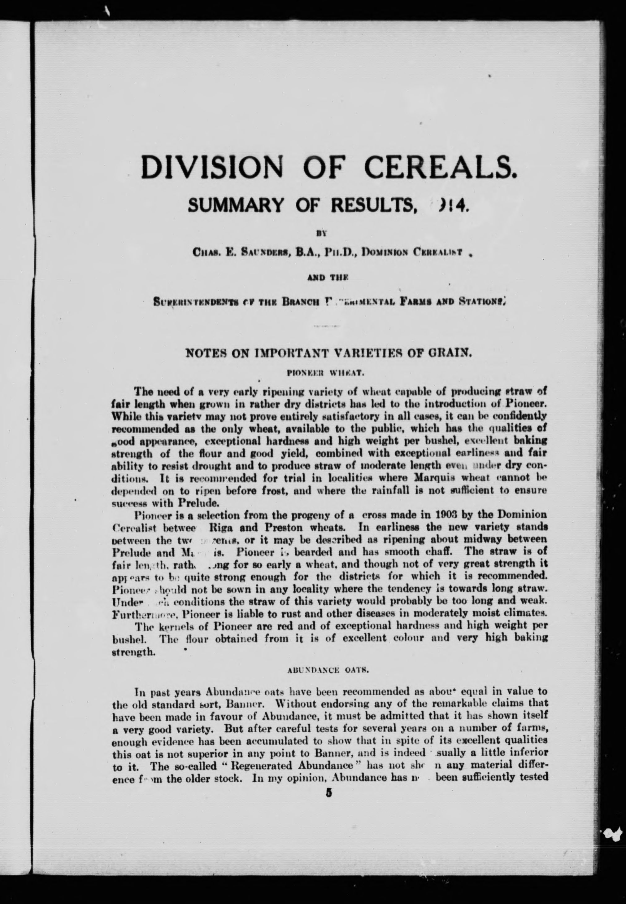 At head of title: Dominion of Canada. Dept. of Agriculture. Experimental Farms. Division of Cereals.
