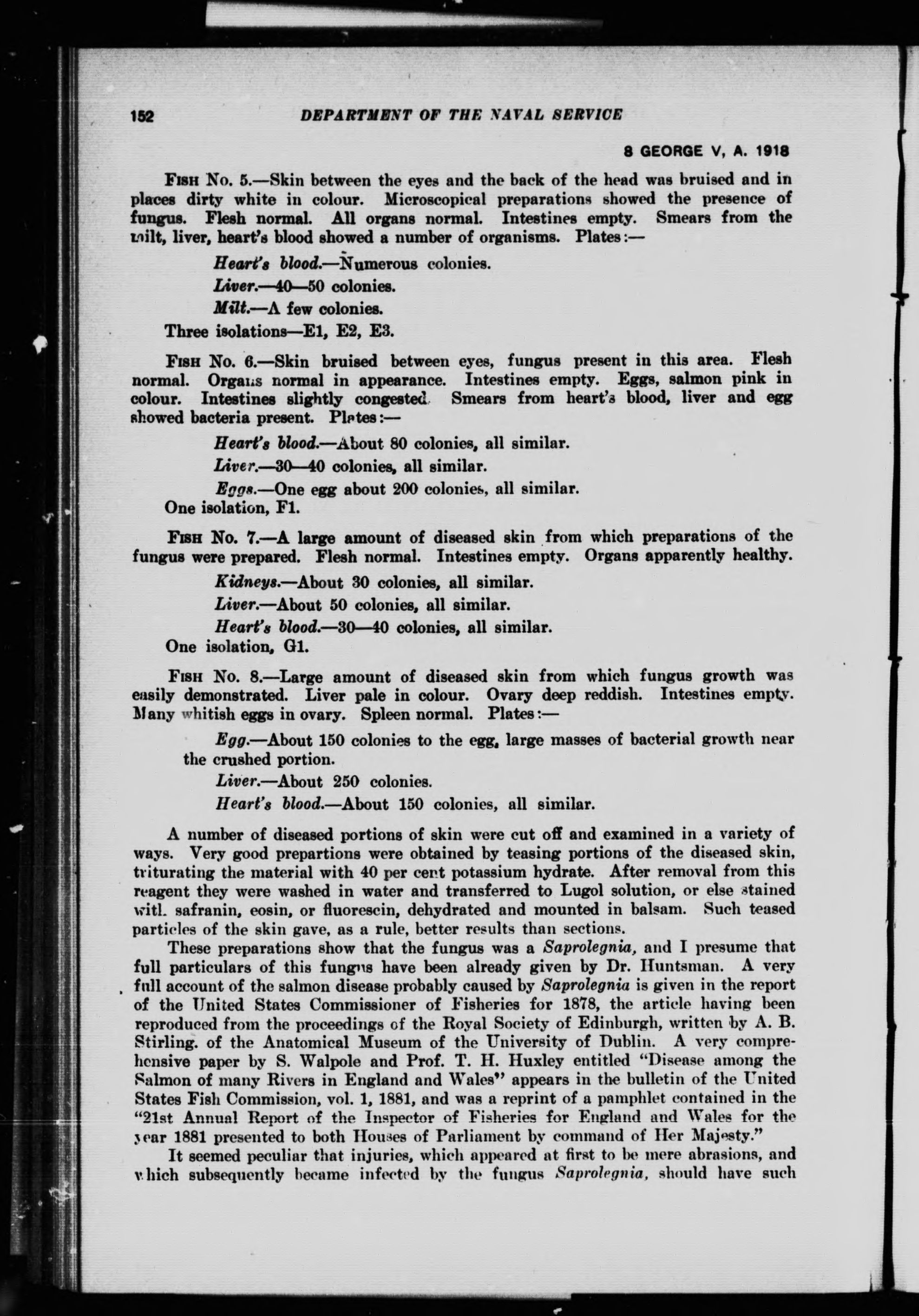 Report on examination of affected salmon from Miramichi Hatchery Pond, N.B.