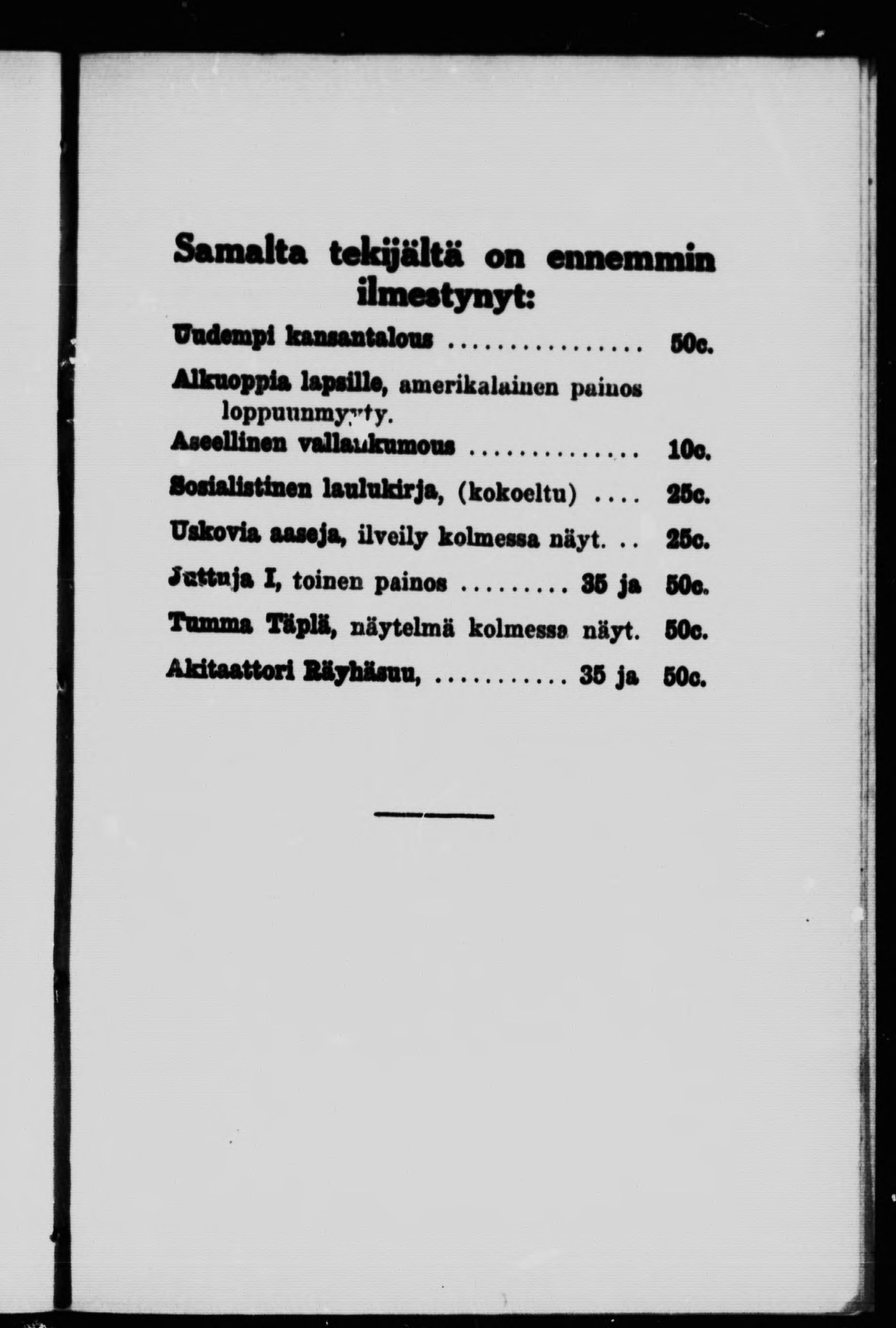 - Port Arthur, Ont. : Työkansan K.-yhtiön Kustantama, 1914.