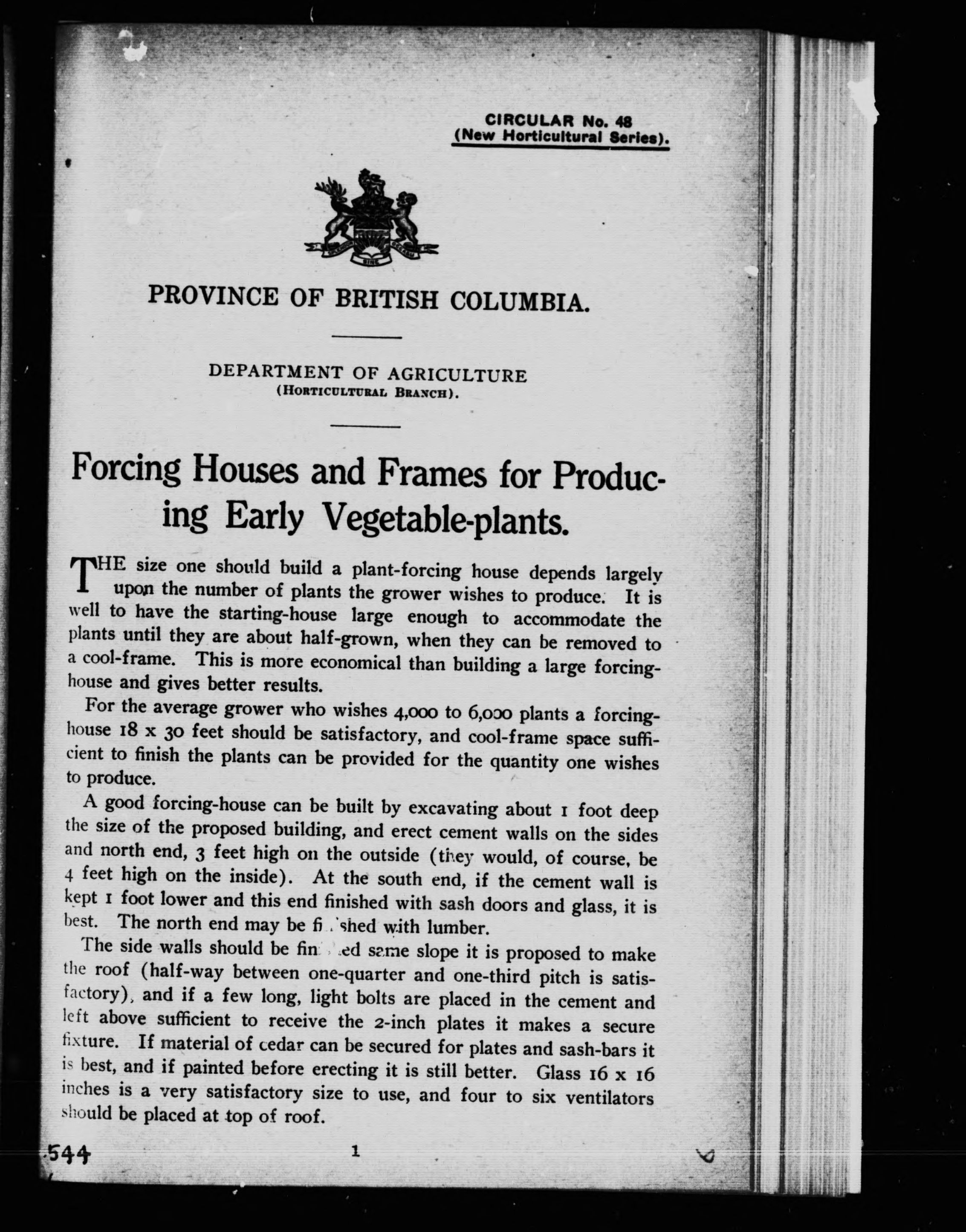 Forcing houses and frames for producing early vegetable-plants - Published