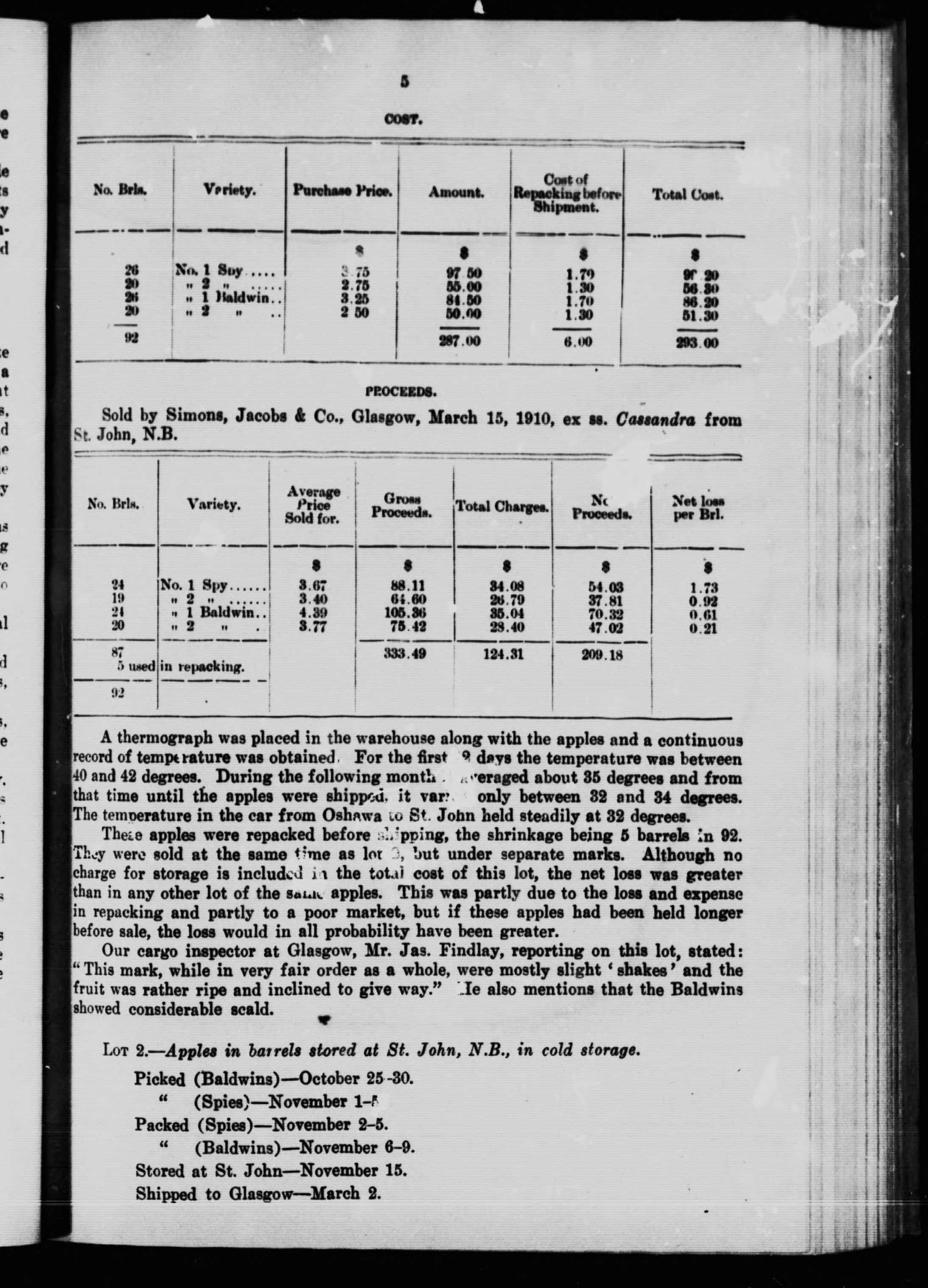 A report on some trial shipments of cold storage apples /