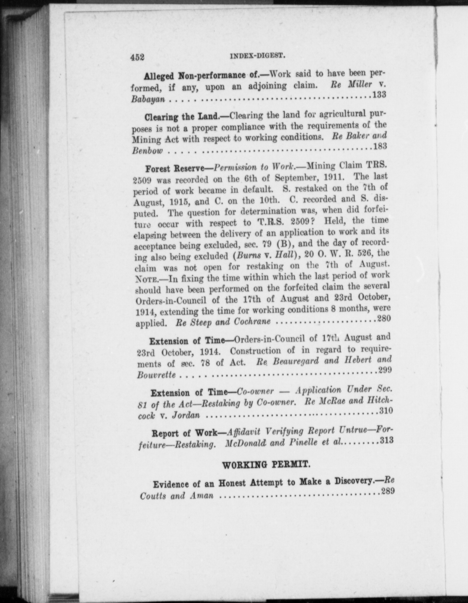 Mining Commissioner's cases, Ontario, 1912-1917