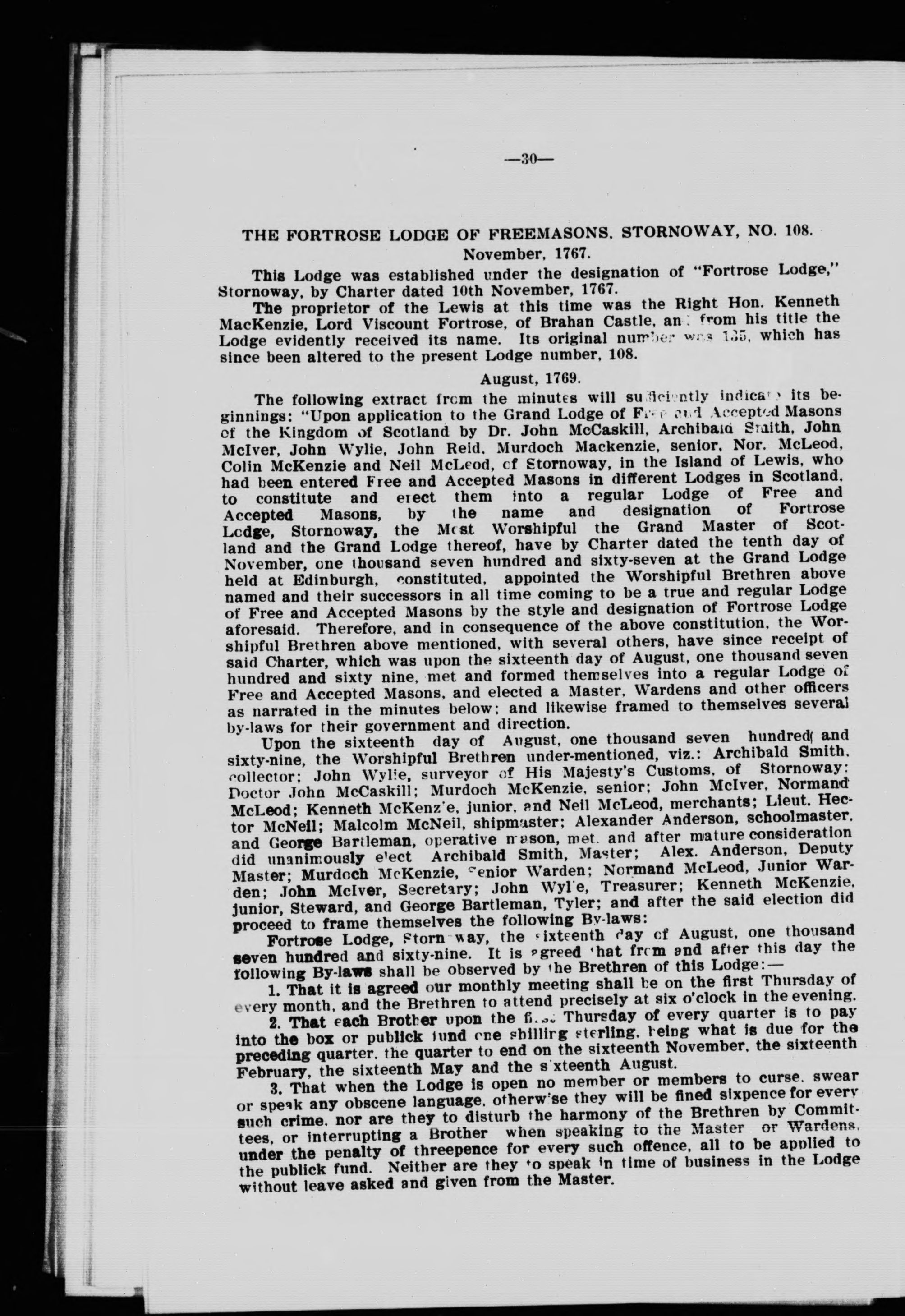 Annals of Lodge Fortrose A.F. & A.M., no. 108, Stornoway /