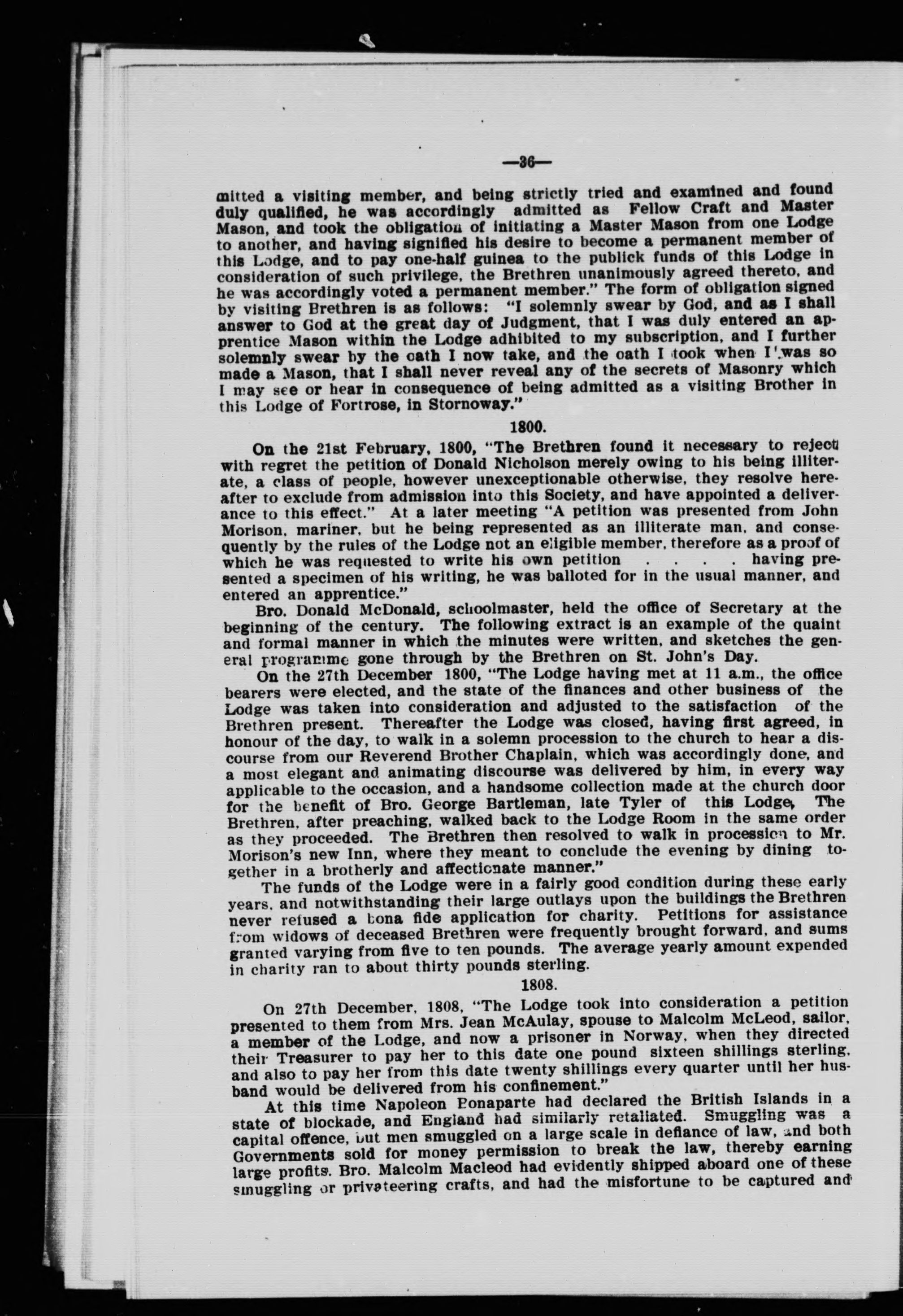 Annals of Lodge Fortrose A.F. & A.M., no. 108, Stornoway /