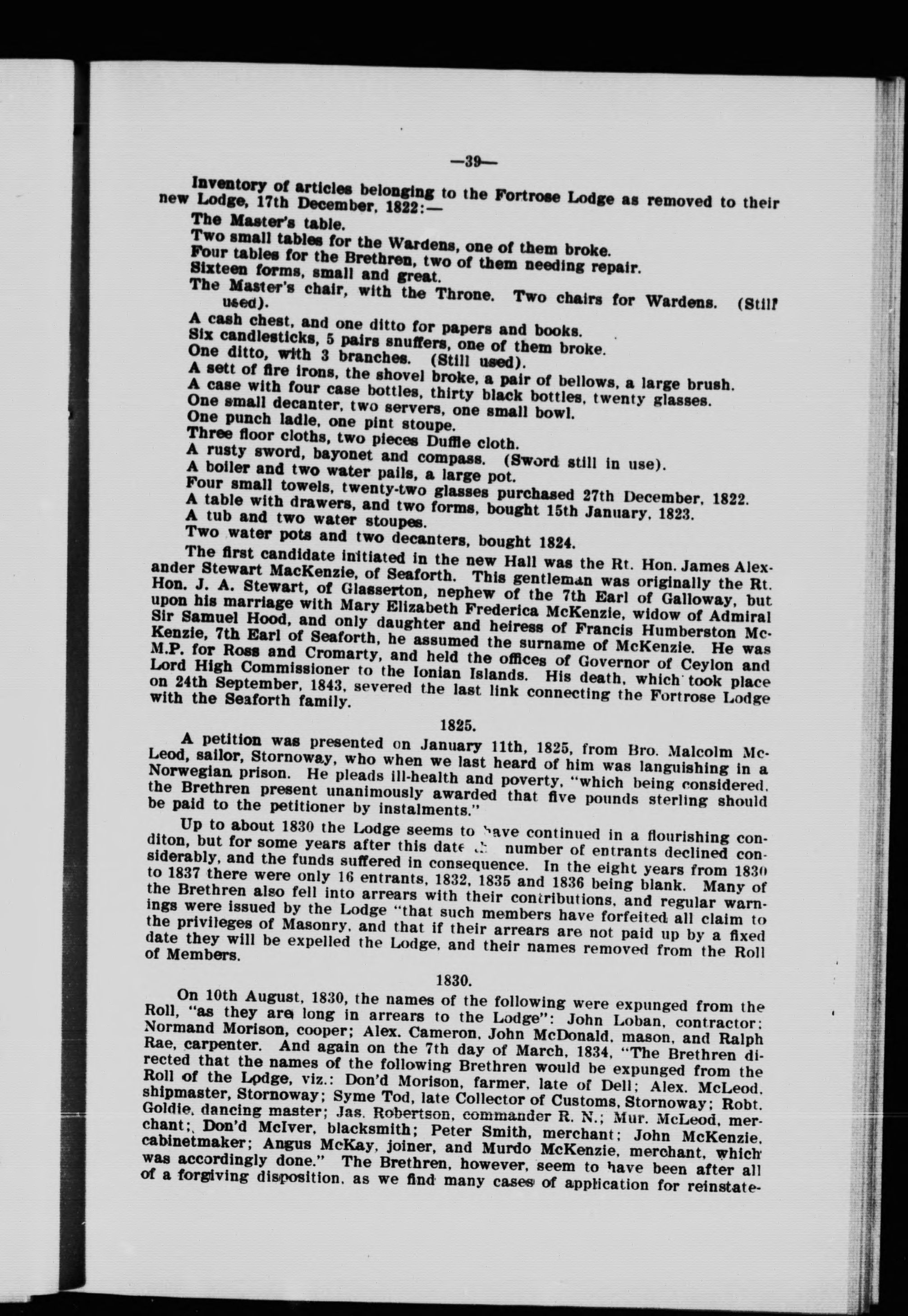 Annals of Lodge Fortrose A.F. & A.M., no. 108, Stornoway /