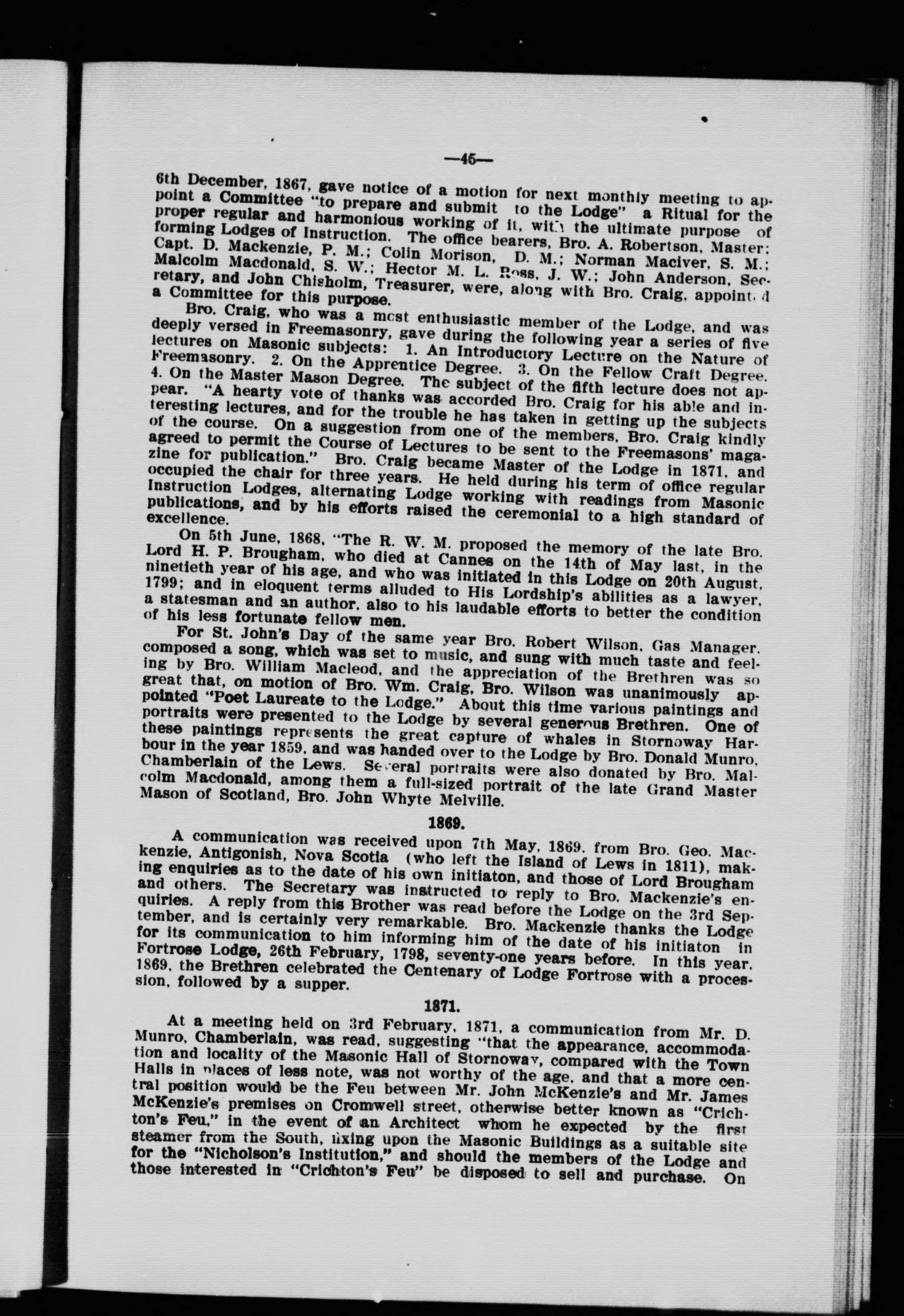 Annals of Lodge Fortrose A.F. & A.M., no. 108, Stornoway /