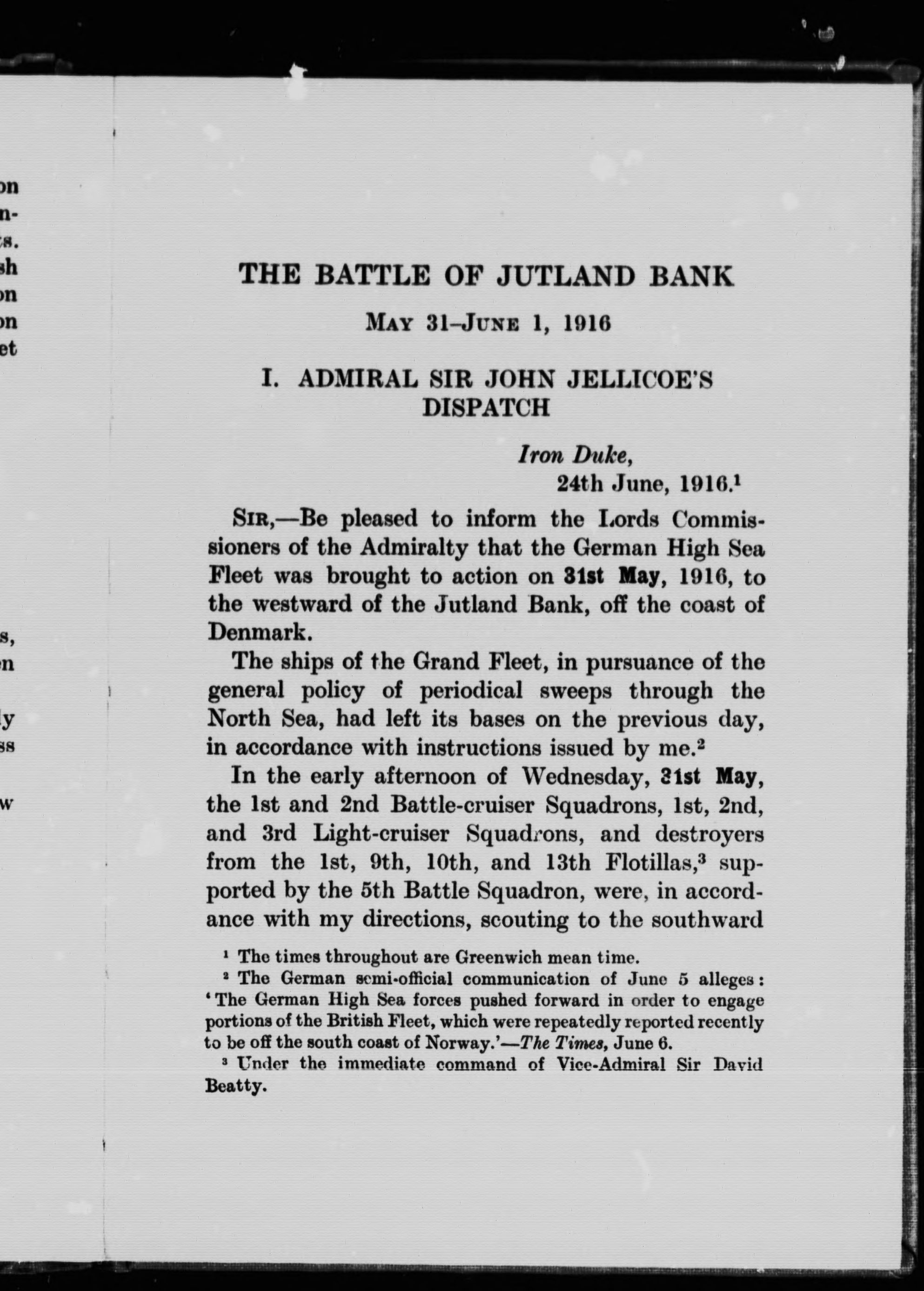 - The Battle of Jutland Bank, May 31 to June 1, 1916 : the dispatches of Admiral Sir John Jellicoe and Vice-Admiral Sir David Beatty