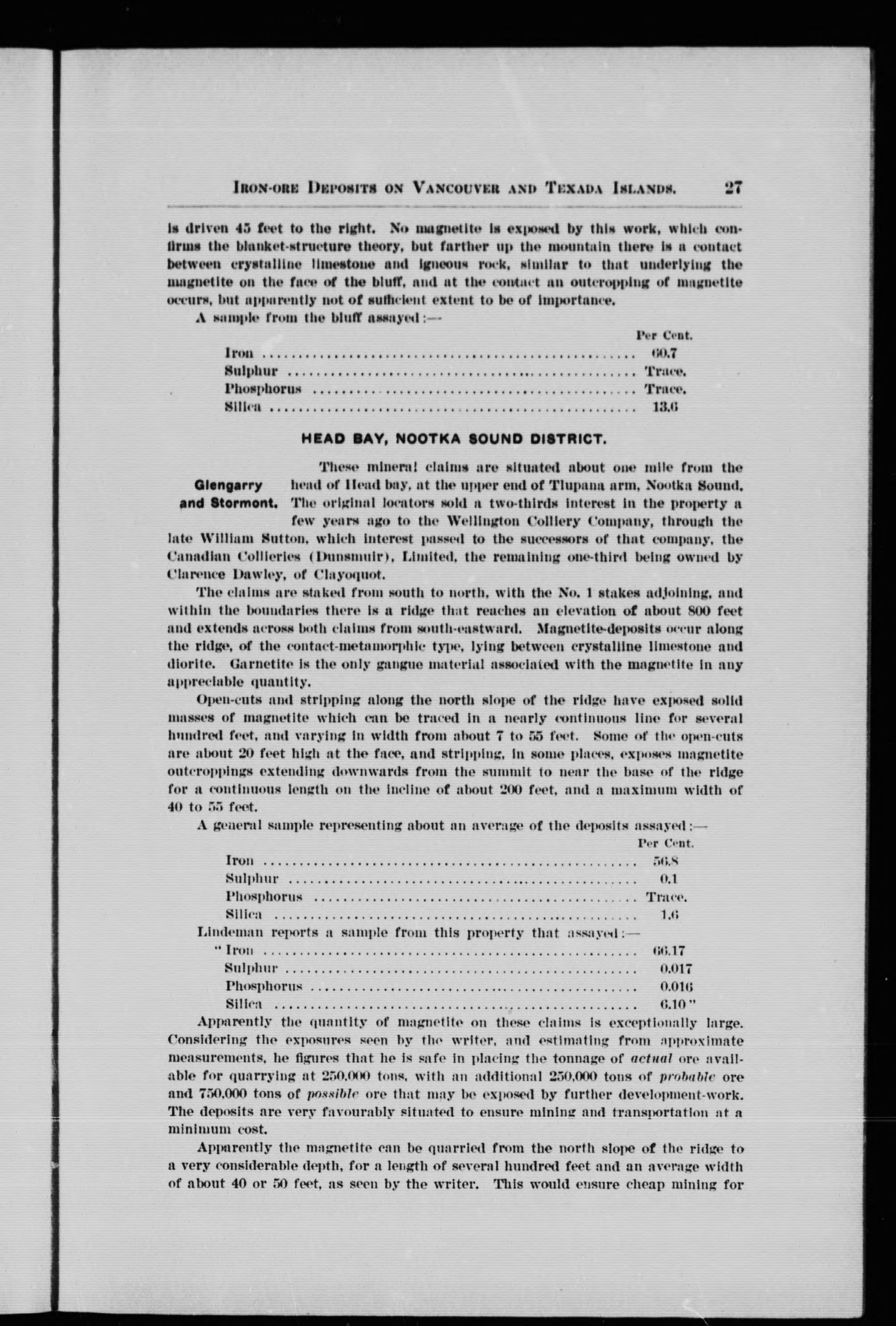 Bureau of Mines report on iron-ore deposits of Vancouver and Texada Islands
