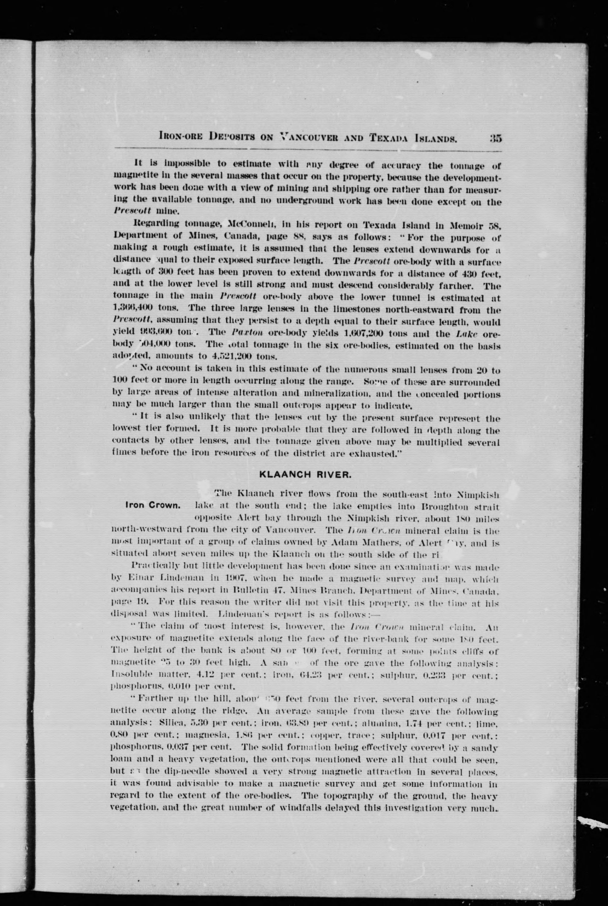 Bureau of Mines report on iron-ore deposits of Vancouver and Texada Islands - Adresse bibliographique